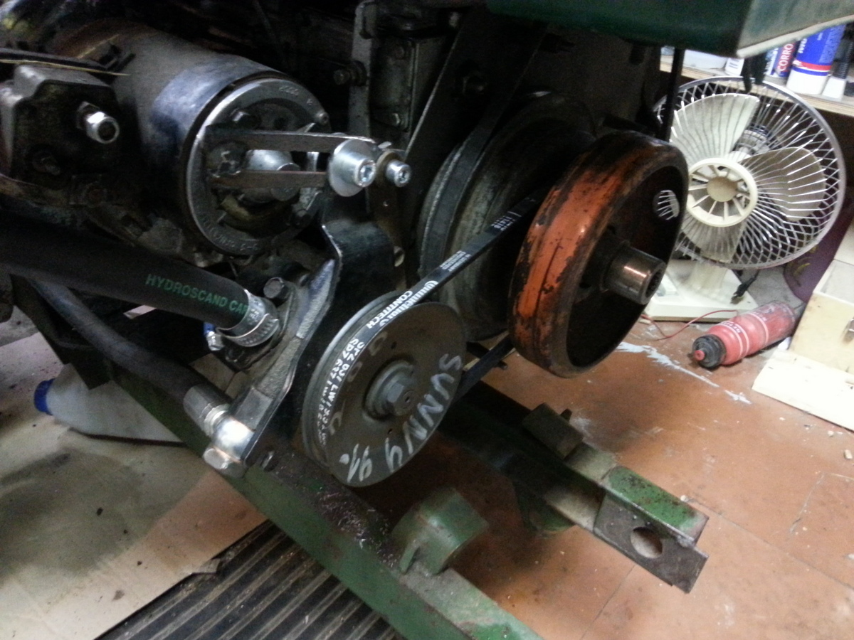 Ostes oli traktori hüdrosüsteemist puudu pump. Originaalpump on teatavasti sel masinal aga üsna raske leida. Olen näinud neid müügis 100-200 euroga. Otsustasin selle asemel auto roolivõimendi pumpa kasutada. Lammutusest sain Nissan Sunny oma. Pöörlemissuund on õige ning pealegi mees lammutuses teadis rääkida, et on üks töökindel tükk ja mitte ei lähe lammutuses kaubaks.