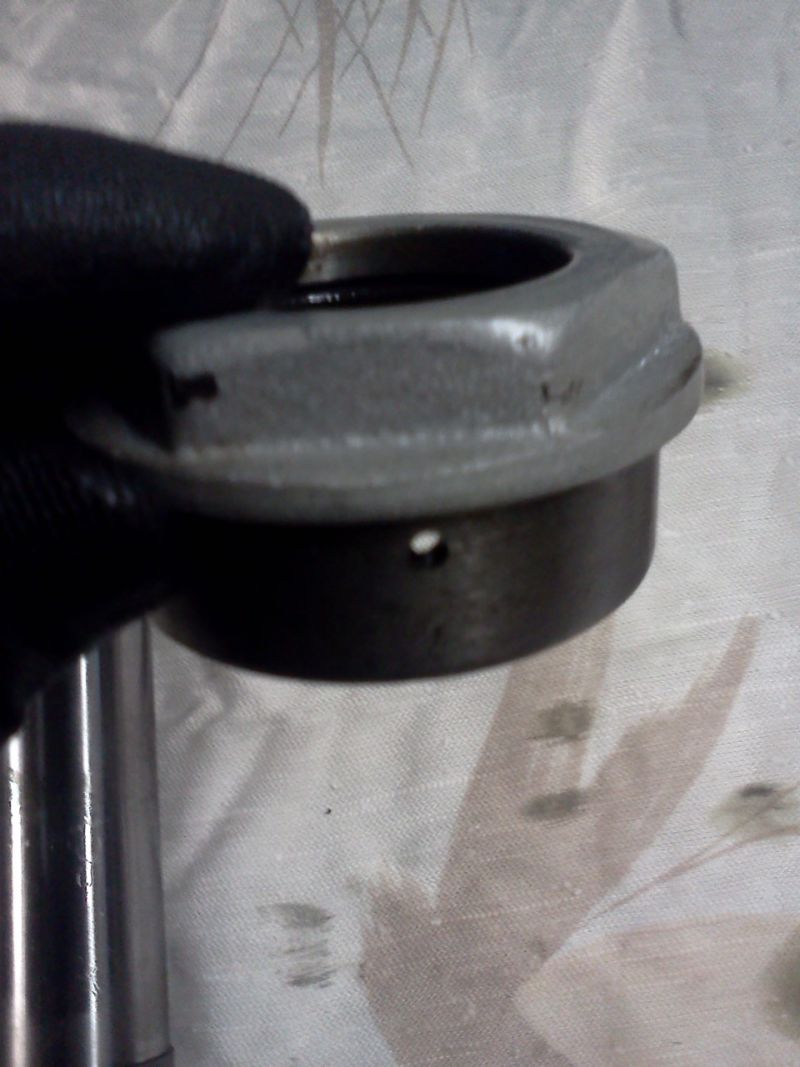 Nüüd pange hästi tähele. Silindri ülemise keerme sees on samuti üks auk. Need mõlemad augud, nii mutri kui silindri sees, on tungraua ülemise seisu ülevoolud. Sealt hakkab õli tungrauas tagasi jooksma, ning tung ei tõsta enam ja tungis ei tõuse ka surve loomulikult. Pihusti testri jaoks, tähendab see aga läbikukkumist esimeses faasis ja kogu tehtud töö laiali kiskumist. Auk ise on keerme sees ja hästi pisike.