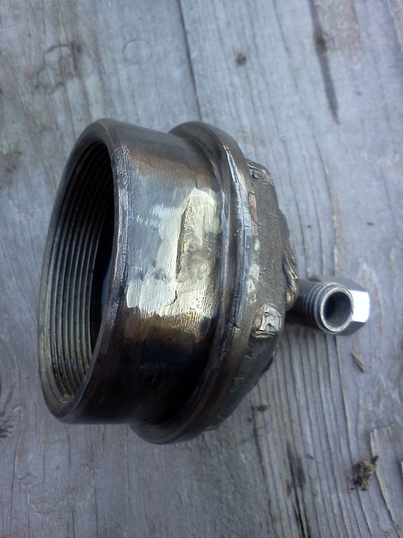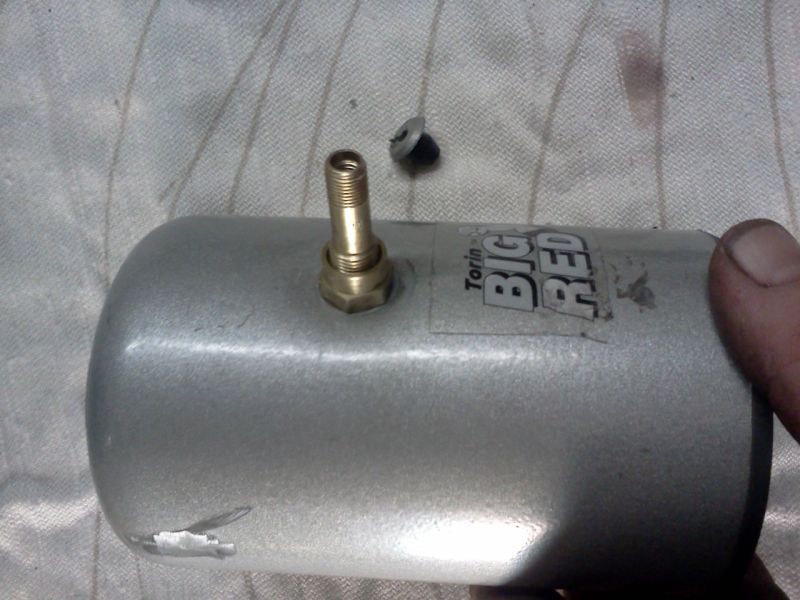 Sellest potsikust peab diisel minema tungi korpusesse. Korpuse ja silindri vahel survet ei ole. Mina Kasutasin korpusesse sisenemise avaks, seda sama kummi korgiga kaetud ava, millest eespool juttu oli (õli välja laskmise juures). Augu puurisin üle 10mm peale ja tilaks kasutasin ratta ventiili, millele lõikasin alla veel ühe kummist tihendi. Ventiilil oli ka kinnitusmutter, millega sai ta korpuse külge kinni tõmmata. Väga vabalt võib tila sinna ka keevitada suvalisest toru jupist.