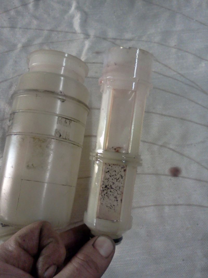 Nüüd tuli hoolitseda anuma eest, kust diisel korpusesse saaks. Selleks ma leidsin sobiva roolivõimu paagi, mille sees oli juba olemas ka korralik filter. Juhul kui teil filtriga paaki ei leidu, on vaja filter siiski eraldi paigaldada. Selleks sobib ka tavaline ühe eurine diisli filter. Teate küll, selline läbipaistev jublakas, mida saab voolikule vahele toppida. Minu oma näeb välja selline: