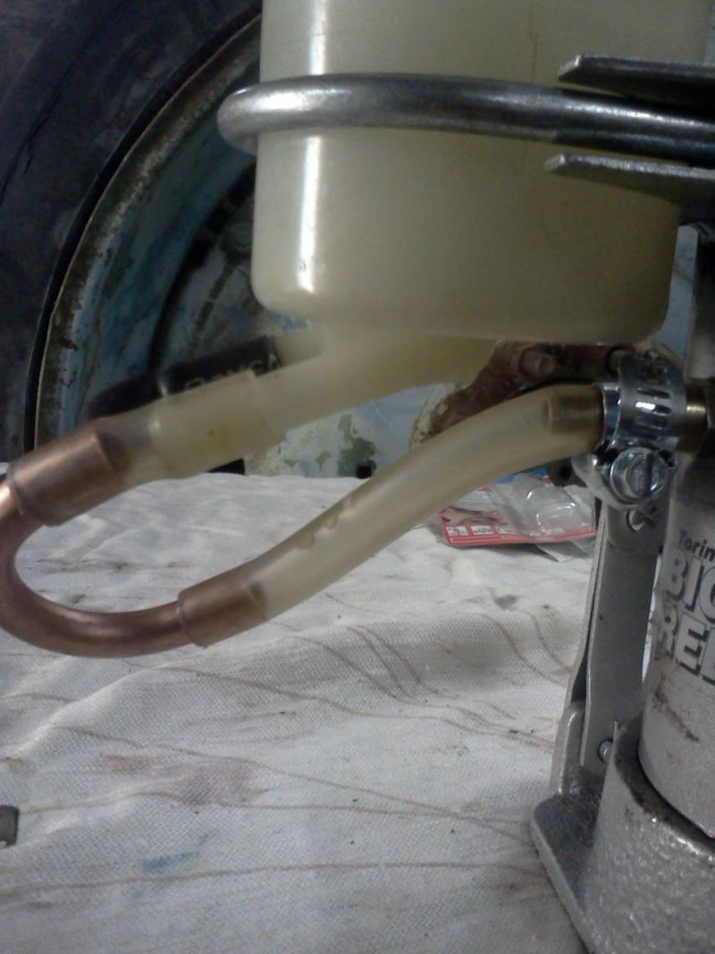 Seejärel väänasin ühe põlve tavalisest vasktorust, ning ühendasin paagi korpusega, läbipaistvate voolikutega.