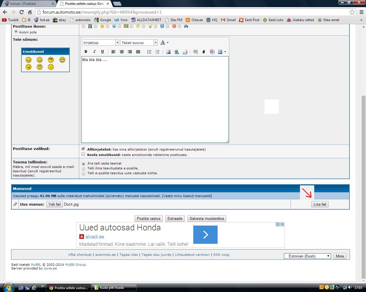 Soov ka foorumisse pilte lisada. Kahjuks annab raporti, et faili maht max 700 kB. Siinsamas teemas viited olemas, kus saab seda muuta (