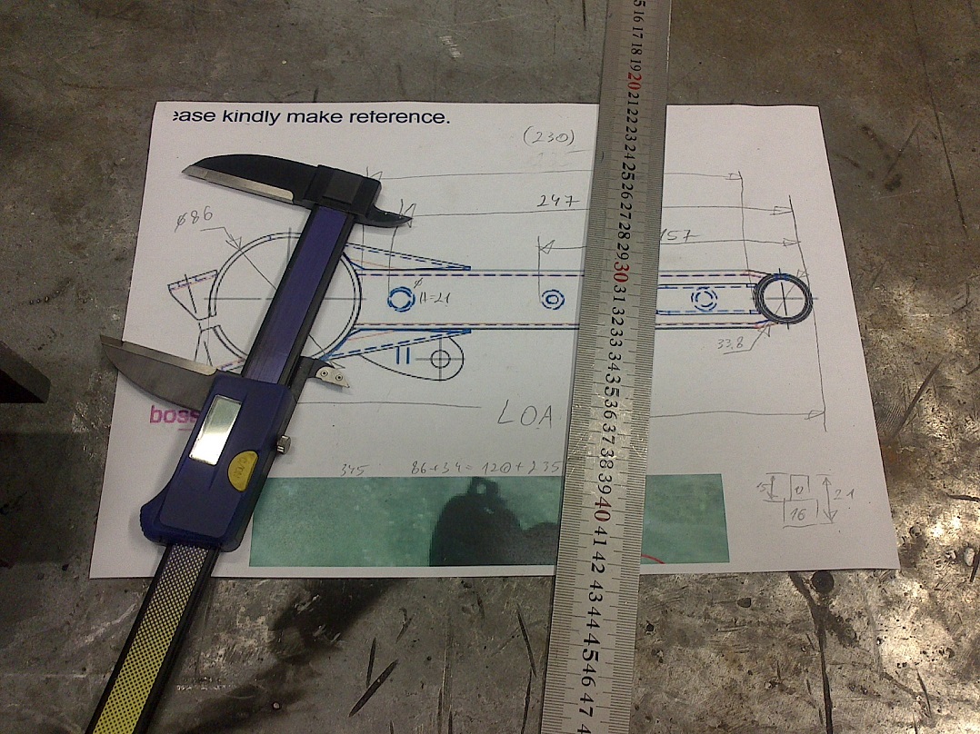 Proovisin siis mööta originaalpikkused ja need paberile kirja. Ei plaani kiiget pikemaks teha, kuna siis vajab kohe ka amordi kinnitus ringitegemist. Samas ta teoreetiliselt vöiks küll kurvis külglibisemist sujuvamaks muuta, kuid tegu on siiski 100 cc masinaga, jääb nagu on.