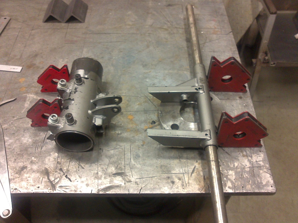 Kuskil hooaja alguses hüppas poiss quadiga teisele selga. Esiöötshoobade kinnituspostid said tänu sellele köva paugu ning läksid öigevähe ühele poole nihkesse. Regullisin tookord sarniiridest rattad taas vertikaali ning nüüd siis tegelesin asjaga. Sirgeks painutama ma neid aga uuesti ei hakanud, kartsin et teeb asja hullemaks keevituskohtadest. Selle asemel panin kahe posti vahele lisatugevduse: