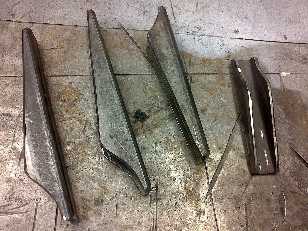 Tugevdused tegin pikemad kui originaalid, et ulatuksid amordikinnituskohast üle ... just too koht kus murde jöud suurim ja ennist mölki läks. Papist šabloonid ette, märked metallile, löikasin löikekettaga välja ja töötlesin vastavalt kiigele. Ühe alumise pidin lühema ja madalama tegema, sest muidu ei saaks amordikinnituspolti sisse:
