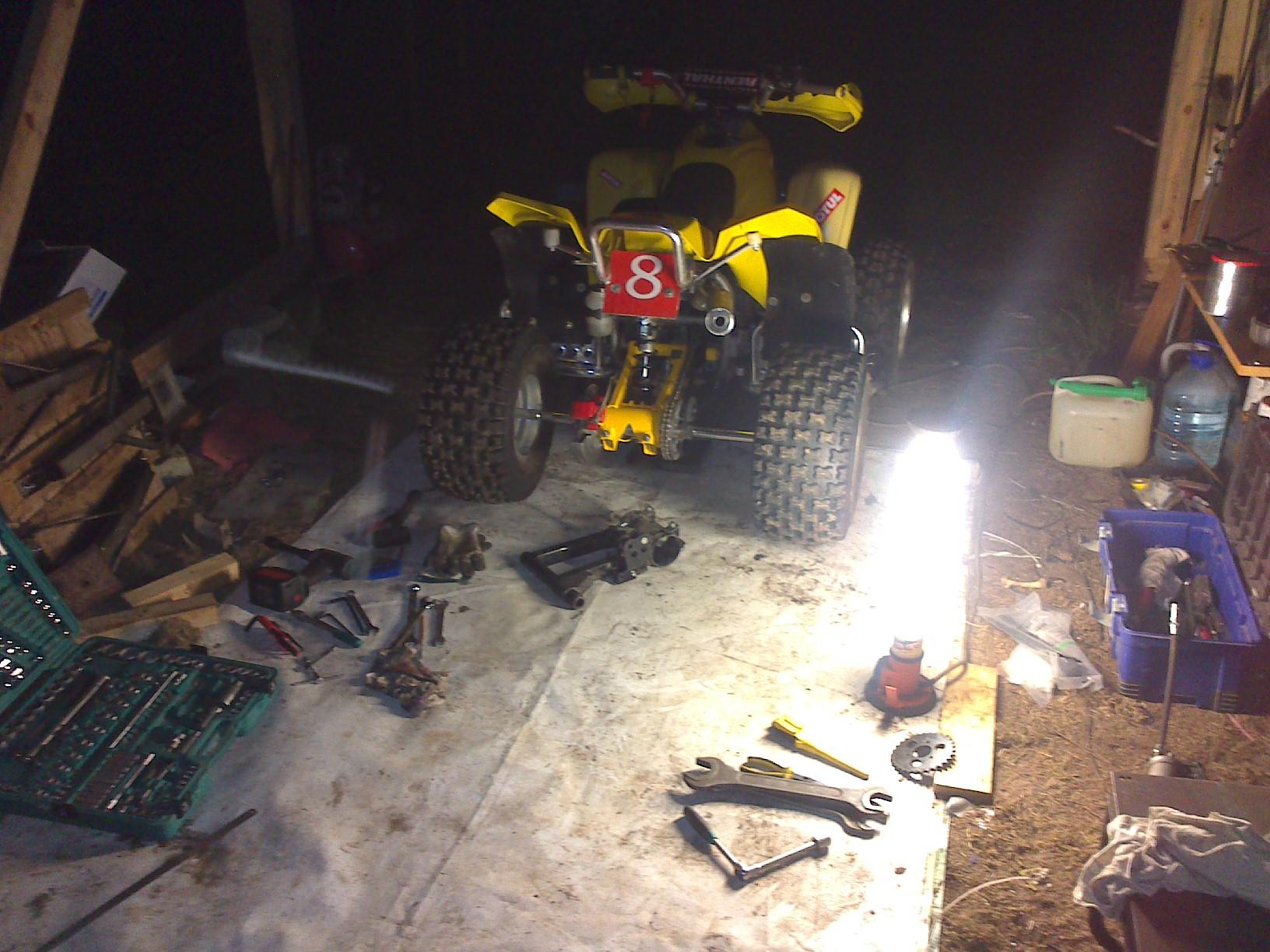 Nüüdseks on quad juba "Legoks" lahti vöetud, et teha täielik Overhaul mootorile ning raam saab tugevdatud ebameeldivate üllatuste vältimiseks.