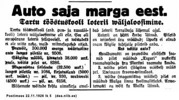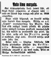 Mis margiga võiks tegu olla? Pildi allkiri 1926 a. 21. nov. Johann Martini loteriiga võidetud auto.