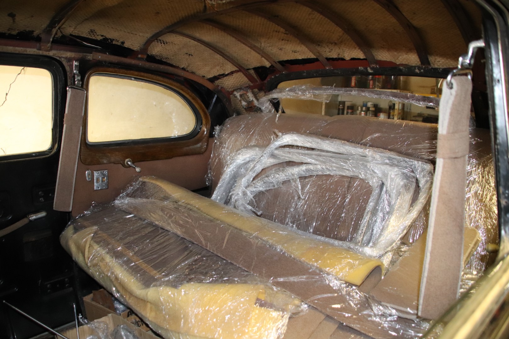 Ega neid enne pilte väga palju pole. Näha, et keegi on hakanud juba kunagi autot restaureerima. Väga palju olen kohanud, et millegi pärast alustatakse polstri ja istmete taastamisega. Antud isendil on see töö muidugi kõik aia taha läinud. Selle lühikese ajaga on mul õnnestunud kindlaks teha, et vähemalt tava mudelid olid sisult pruunid, kaasa arvatud lae polster. Või on kellelgi teisi andmeid.