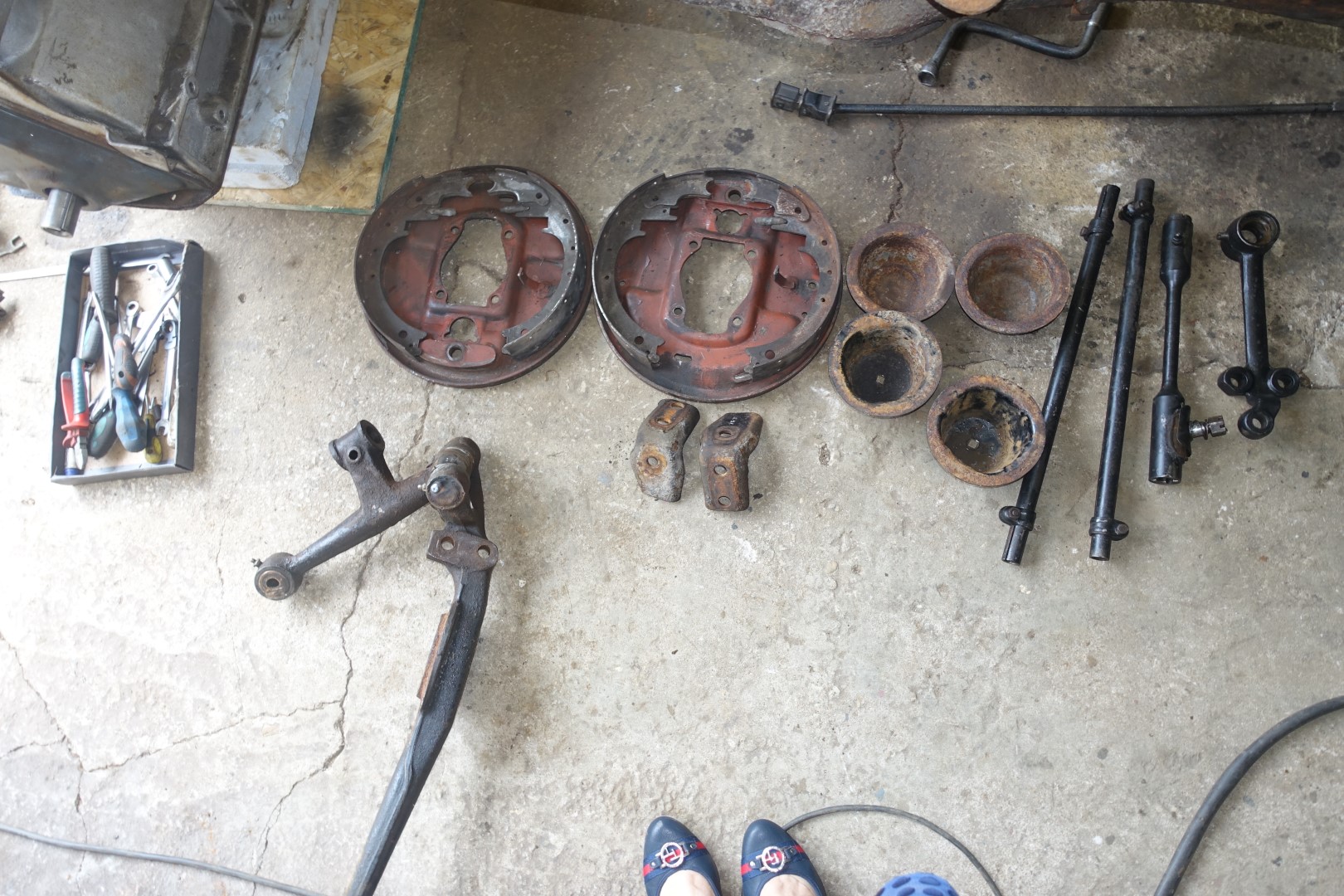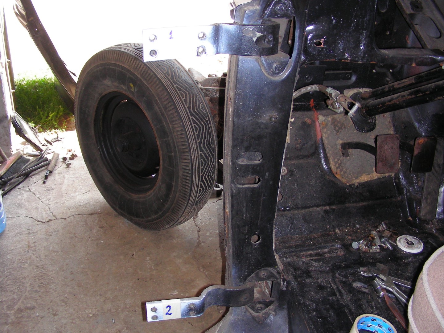 Kuskilt tulid eelmisse postitusse jälle pildid raamist. Piduritrummlite sisepindade järgi poleks see auto nagu sõitnudki, või on vahetatud?