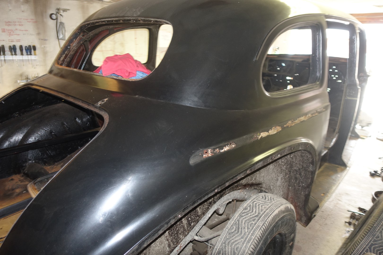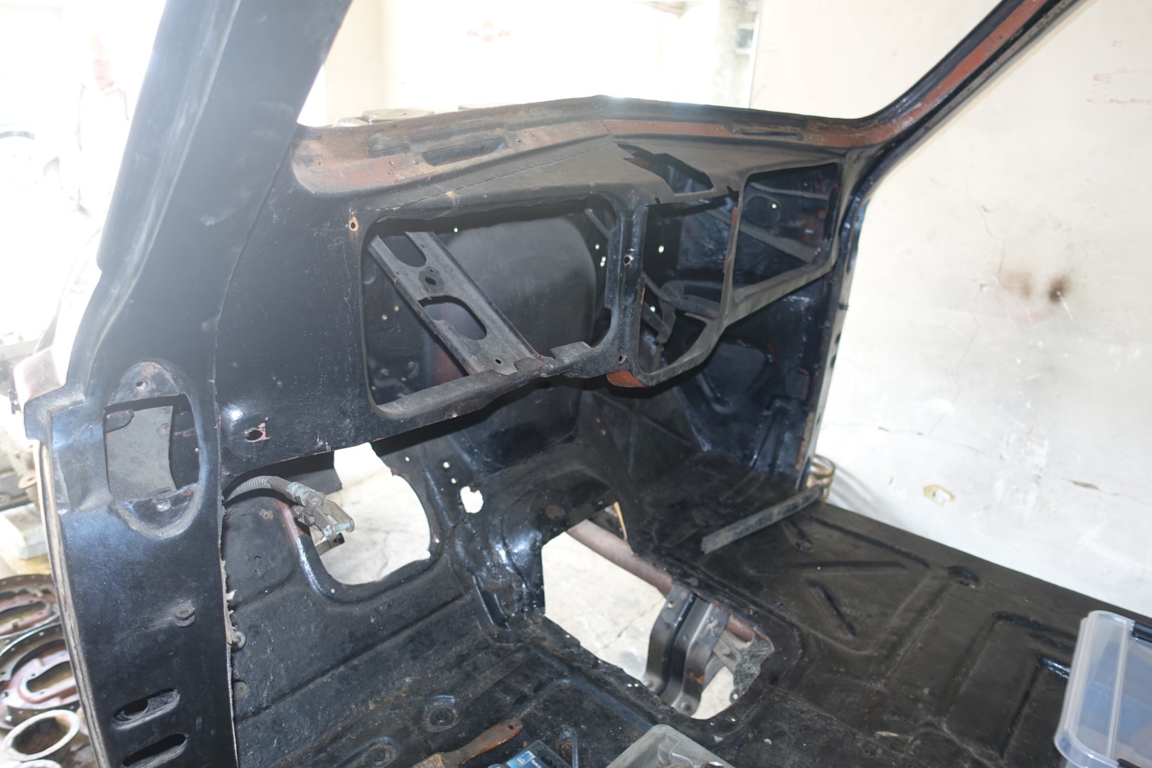 Viimastel piltidel näha ka üks vähestest kohtadest, kus roosteuss on tegutsenud. Kõige parema pildi kere seisukorrast annab ikkagi liivaprits. Visuaalsel vaatlusel küll mingeid keevitus jälgi ei suutnud avastada.