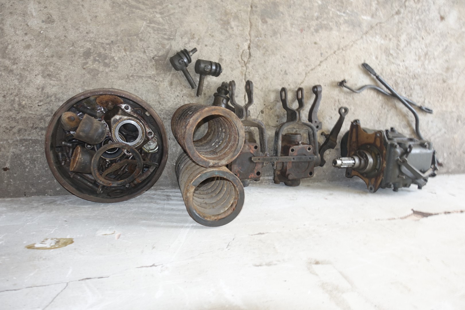 Nüüd siis auto koost lahti võtmine. Nagu mainitud, masin üllatavalt komplektne, isegi karteri alused plekid küljes, mis tavaliselt nii vanadel autodel teadmata suunas haihtunud. Aga eks pildid räägivad enda eest.