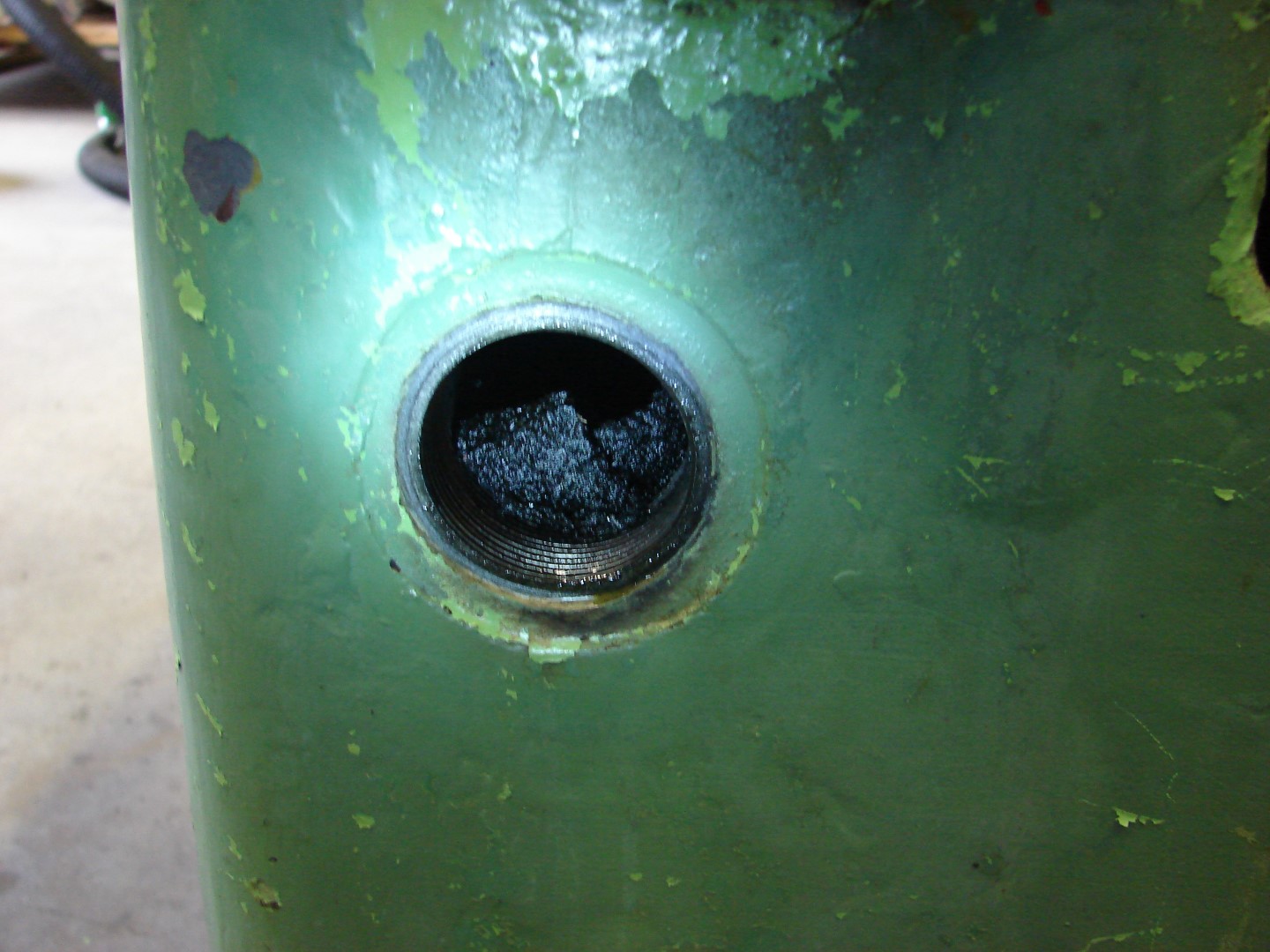 Lõikevedeliku kambritest ca 30liitrit laastu ja hüdraulikakambrite põhjast ca 2 cm kihi mingit haisvat muda.