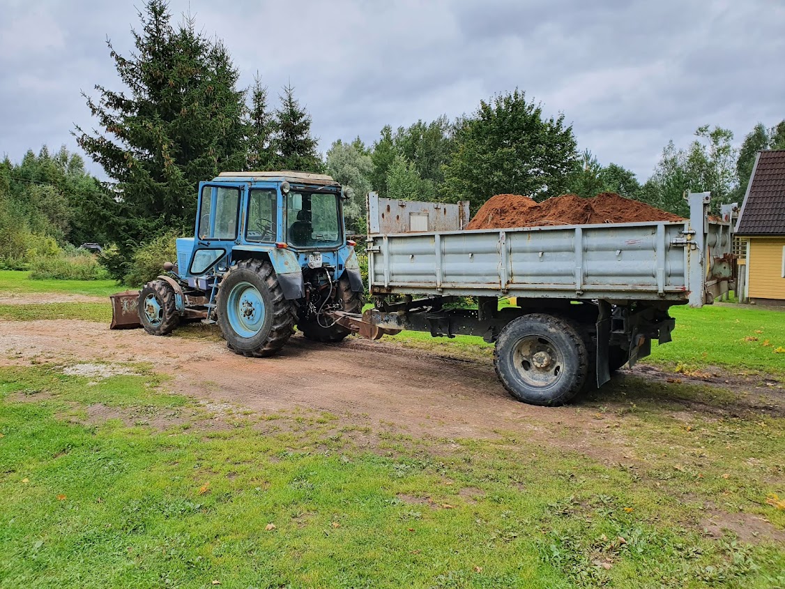 Natuke vahepeal jälle asju liigutatud. Eelnevale postitusele vastates, olemasolev haakelatt on hea ja lihtne lahendus kindlasti, aga minus piisavalt usaldust ei tekitanud. Vaja on konksu selleks, et vedada ühe sillaga haagist. Umbes 5-6 tonni jagu koormat. Seega vertikaalne koormus haakeseadmele ehk maksimaalselt 2 tonni kanti. Lisaks oli see originaal haakelatt kuidagi kulunud olemisega, logises nendes tappides seal igas suunas. Siin siis näha selline keskmine koorem, mis vajab vedamist. Veel eelmise traktori haakes.