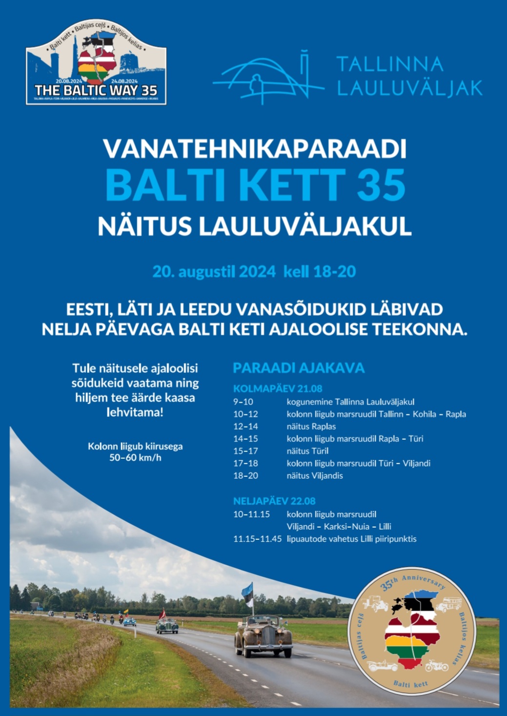 Balti kett 35 vanatehnikasõidu lõplik ajakava on paigas. 20. augustil 2024 on Tallinna Lauluväljakule oodatud ka kõik need kuni 1989. aastani valmistatud sõidukite omanikud, kes ei ole registreerunud sellele sõidule, kuid kelle auto, mootorratas, buss või veoauto on näitusel näitamiseks piisavalt originaalilähedases seisukorras. Selekteerimine toimub Lauluväljaku Mere väravas. Kogunemine Lauluväljakul alates kella 17st.