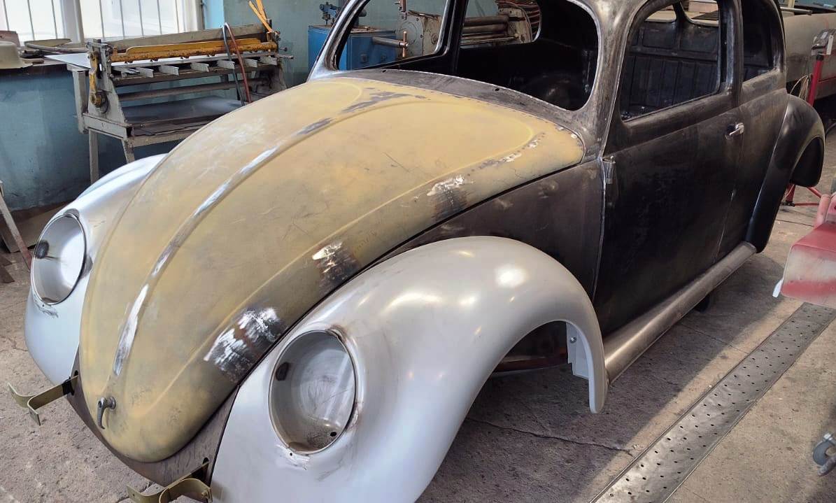 05.01.2024 seisuga on keretööd sisuliselt lõpetatud. Auto kerelt õnnestus suures osas välja puhastada ka originaalne tumehall värv, mida püütakse maksimaalselt säilitada. Äralõigatud esiosa tuli uuesti taastada, esimesed poritiivad aga olid juba 80ndatel viidud doonoriks ühele sarnasele Leedu autole. Jälgime ka selle auto saatust edasi.