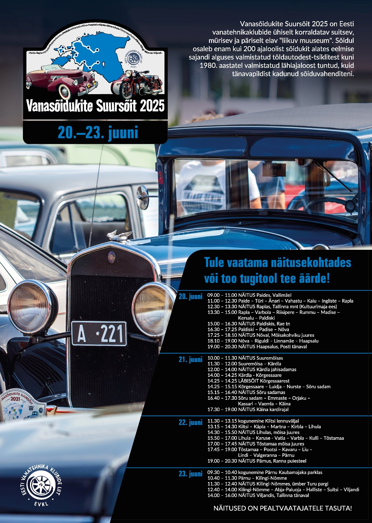 Vanasõidukite Suursõit 2025 täpne ajakava ja näituste ajad on saanud selgeks.