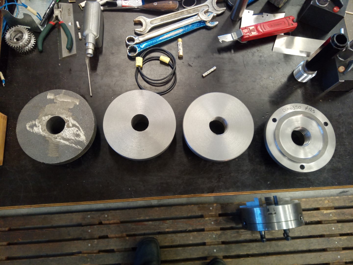 Põhiprobleem pole padrun vaid flants, seda 36x4mm keeret pink ise ei lõika ja selleks, et kupatus normaalselt spindli otsa istuma saada, on vaja treida, proovida, uuesti treida jne. Vähemalt mulle suure pingiga treial, kes selle valmis teinuks, nii seletas - plaan oli lõpuks kogu pink suure pingi kõrvale tarida, a plaaniks see tookord jäigi.