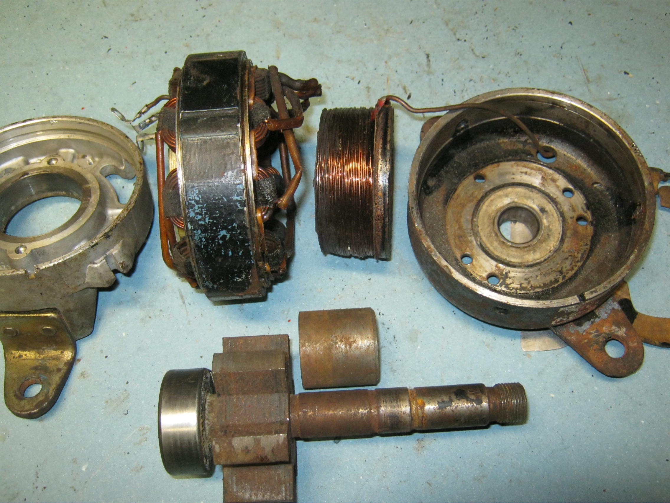 Mure nimelt laadimisega, alguses laadimis probleem esines aeg ajalt madalate pööretega. Nüüd enam üldse ei lae. Ma isegi ei tea kuhu testri klemmid panna, kuna generaatoril 5 juhet küljes. Mootori poole 2 ja teisel pool 3. Testriga sai proovitud erinevaid kombinatsioone. Näidu sain siis ainult seal poole pealt kus kolm juhet ( alumine ja ülemine) Näit oli 12.3 - 12.6 , kuid minu arusaama järgi peaks olema 14 ? Arvasin et harjased läbi, võtsin maha katusin siis ja sealt, aga lahti seda ei saanud, siis öeldi et seal polegi harjaseid?