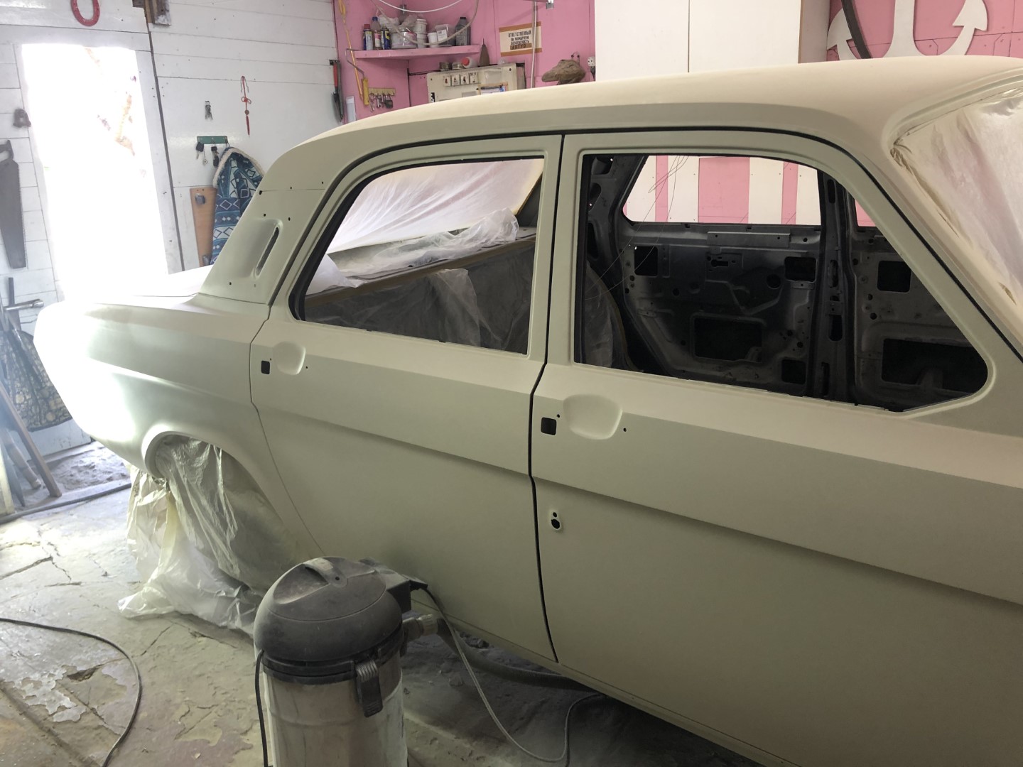 Olen siin GAZ 23 postituse all natuke kirjutanud poisi GAZ 2424 tegemistest ka. Praegu on selle aparaadi tegemine tal unarusse jäänud. Kogu aur  ja vahendid on läinud Mustangi tegemisse. Loodab selle mõne nädalaga kokku saada, eks siis tasapisi saab jälle 2424 liigutama hakata. Momendil ootab värvimist. Eeltööd tehtud.
