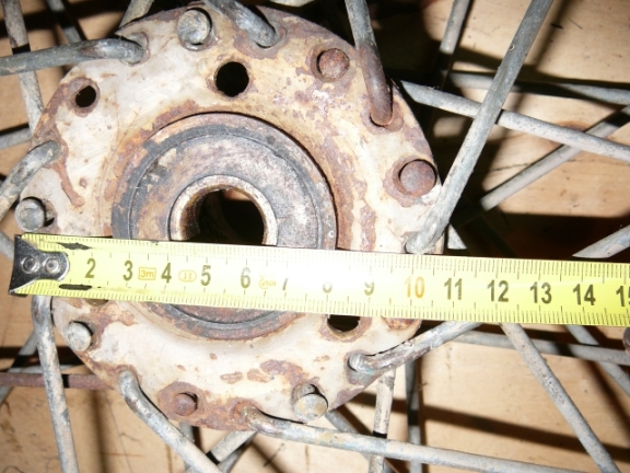 Mootorratta ratas, läbimõõt enam-vähem510mm. Pintsliga ülevõõbatud, algselt olnud helepruun/beeþ, kodarad suht jämedad, unustasin läbimõõdu võtmata, rummul määrdenippel.
