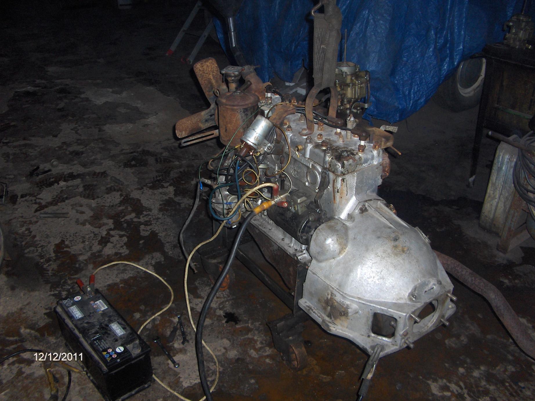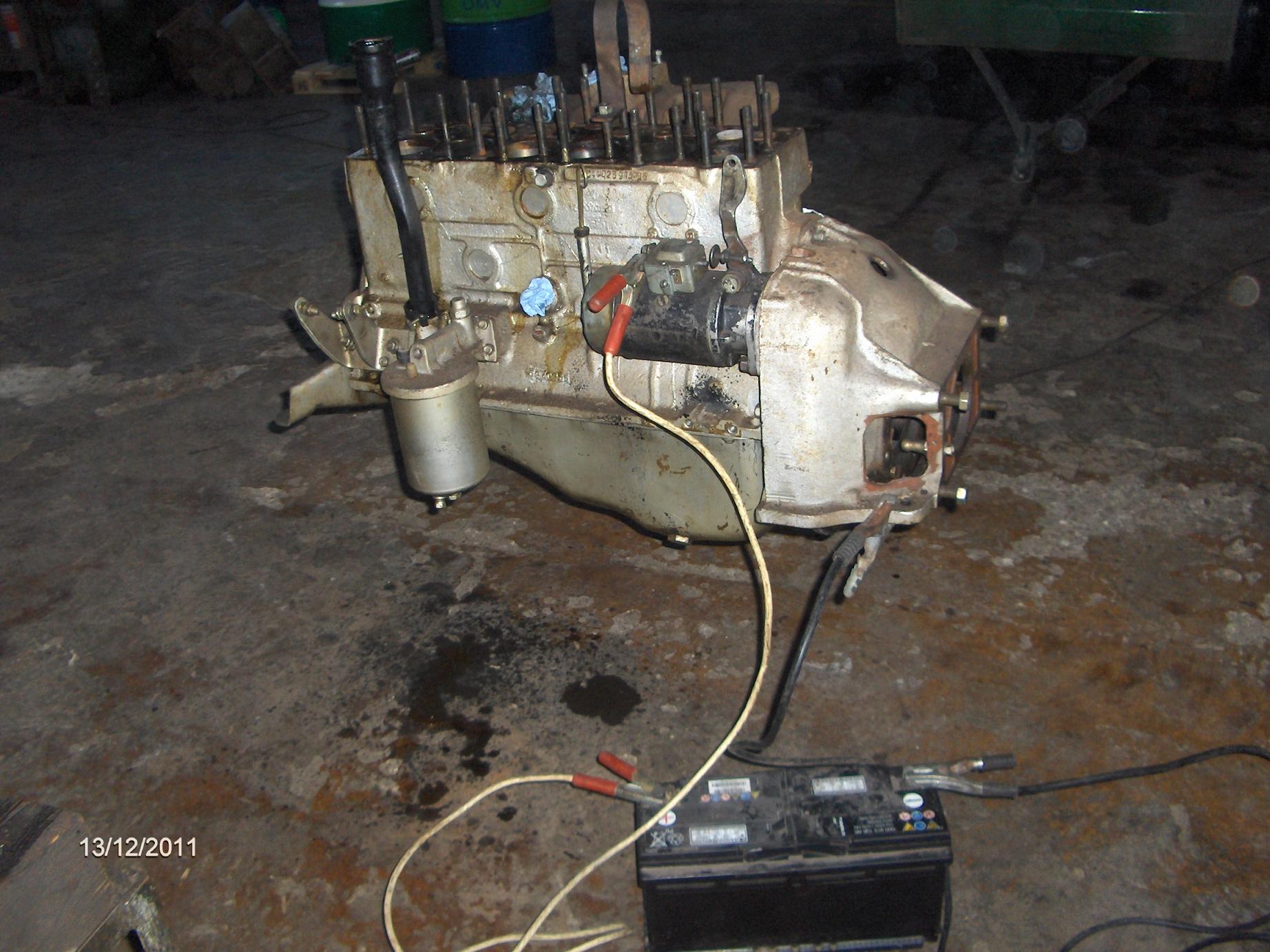 Mootori poole pealt on asi alles alguses. Valasin uue õli(autooli) sisse ja vahetasin õlifiltri(ikka vana papist) ka ära. Küünlad keerasin maha ja ühendasin aku starteriga. Siis selgus, et starteri pendiks viskab üle. Õnneks oli jäänud vedelema juba vene ajast üks katkise otsaga starter, millelt sai pendiks ka ära võetud ja ümber tõstetud. Tühjalt ringi ajades sain surved ära mõõta- kuuest kahel oli ta ikka nigel küll(3,5-4,0).Hiljem proovin igaks juhuks veel õliga ka ära, siis selgub kas on kinni jäänud rõngad või klapid ei pea. Õlirõhu sain ka üles(1,5), nii et õlipump tundub korras olevat. Plaan on ta ikka käima ka ajada veel enne, kui laiali tõmban. Esmane käivitus kahjuks ei õnnestunud, jagaja kontaktid vedasid alt. Nüüd on päris uus jagaja olemas ja kui ta saab peale pandud koos süüte paika sättimisega, siis usun, et kuulen ka töötava mootori häält. Põhiliselt loodan, et kolksu poleks. Sellisel moel üritan saada mootorist mingigi pildi, (kuna ta on lätist toodud ja ka müüja ei osanud midagi tarka kosta) enne lahti võtmist.
