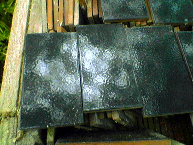 Jalus on siis üks kastitäis selliseid musti väikeseid kahhelkive. Mõõt on 120 X 65 mm. Palju neid seal kastis on ja kas mingit muud värvi ka, peale musta on, ei ole uurinud. Jäid päranduseks eelmisest majaomanikust.