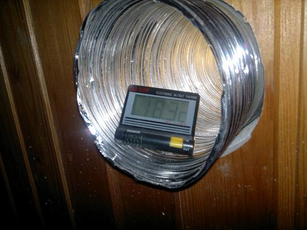 Päikesekollektorisse alt sisenev õhk +0,9C ja ülevalt väljuv õhk +18,3C.