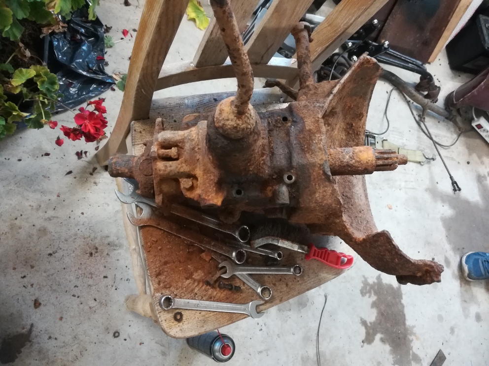Täna sai siis avapauk tehtud GAZ A taastamisele. Muidugi igasuguseid juppe on üle maailma kokku aetud ja aeg küps reaalselt midagi tegema hakata. Kõigepealt võtsime käsile käigukasti. Parema puudusel tuli mängu panna Taavi poolt maa seest leitud originaalne A kast, mis seal siis 1941 a-st oli lebanud. Siduri korpus küll puru aga see on mul olemas. Kast ise siis selline.
