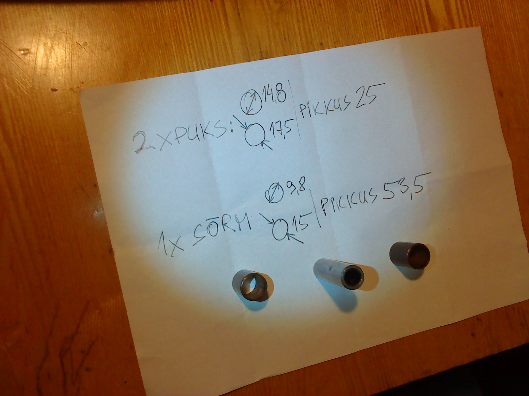 Kolvisõrm on seest õõnes - n.ö. toru . Diginihkaga on selle pealmine läbimõõt 14,97 , pikkus 53,27 , seina paksus 2,47