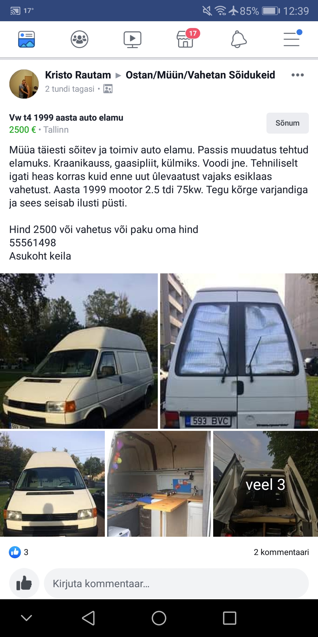 Kui kellegil tuli idee "vanlife" proovida, siis nägin ühte pakkumist facebookis.