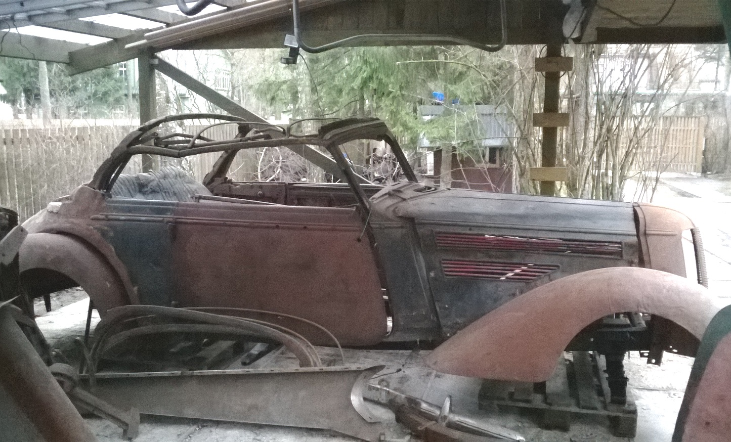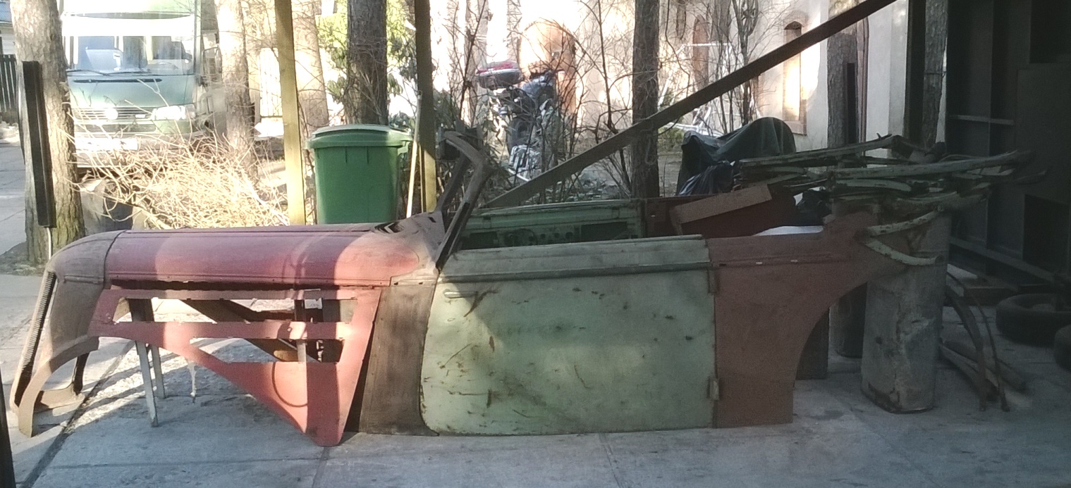 Juppe sorteerime ja katalogiseerimine siiani, aga suures plaanis oli kahe kabrioleti kokkupanekuks kõik olulised osad olemas – kered, uksed, aknad, katusesõrestik, torpeedo, kapotid, poritiivad. Muid osi on mõnda nelja auto jagu, aga palju juppe on loomulikult ka puudu. Autod olid nii juppideks võetud, et vaid üksikuid osi tuli kahekesi tõsta. Neid bussitäisi tuli ikka mitu ja tassimist jätkus mitmeks päevaks.