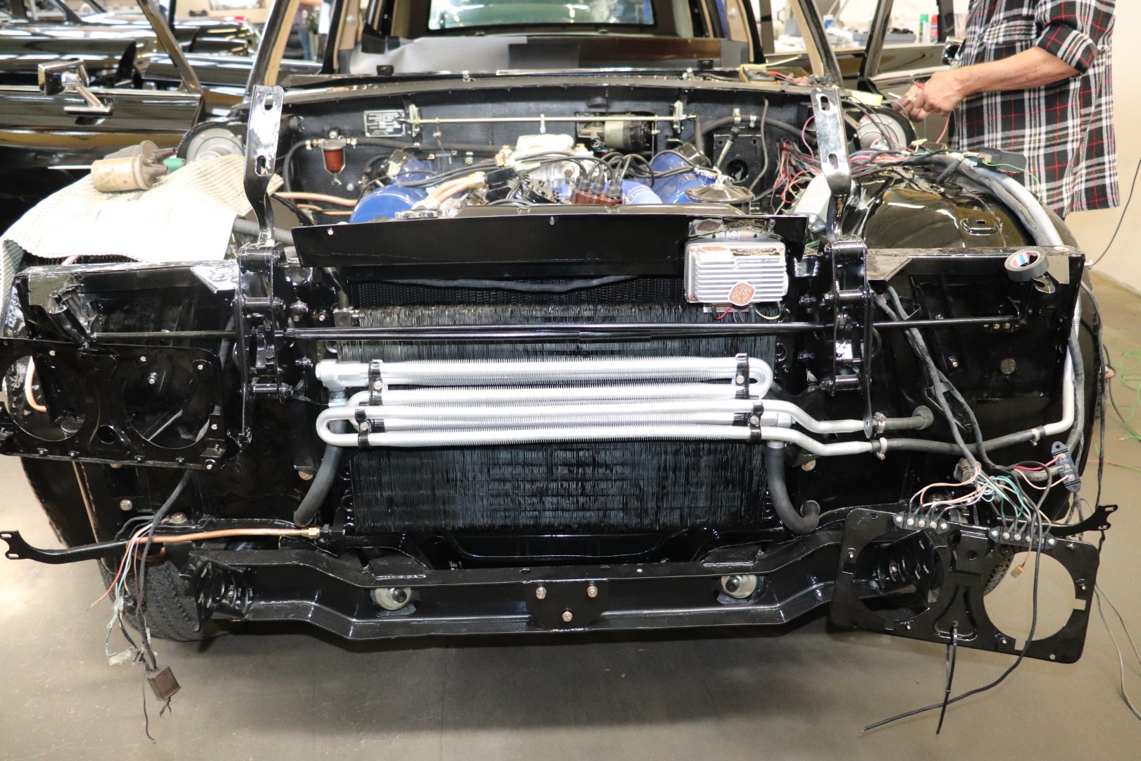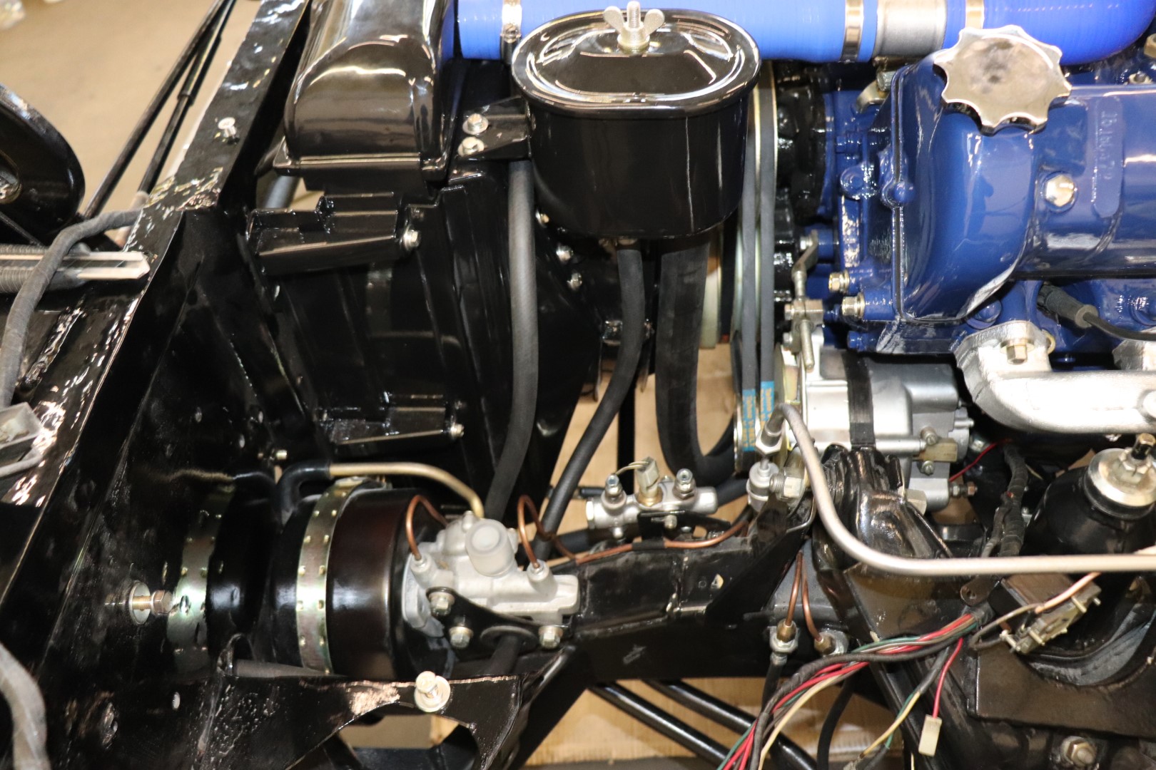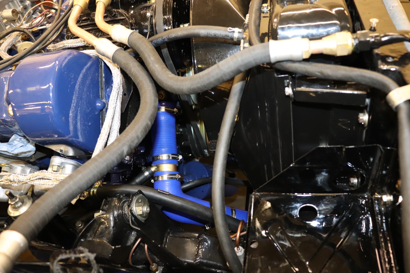 Eks ta probleem ole. Kõige halenaljakam, et originaalis olidki kunagi sinised voolikud. Vähemalt üks alumine, mis paistis originaal olevat oli sinakat tooni. Muidugi 40 a. on teinud oma töö ja võta nüüd kinni milline see õige toon oli ja kust need voolikud telliti ja miks kogu see mootor koos käigukastiga oli siniseks värvitud.