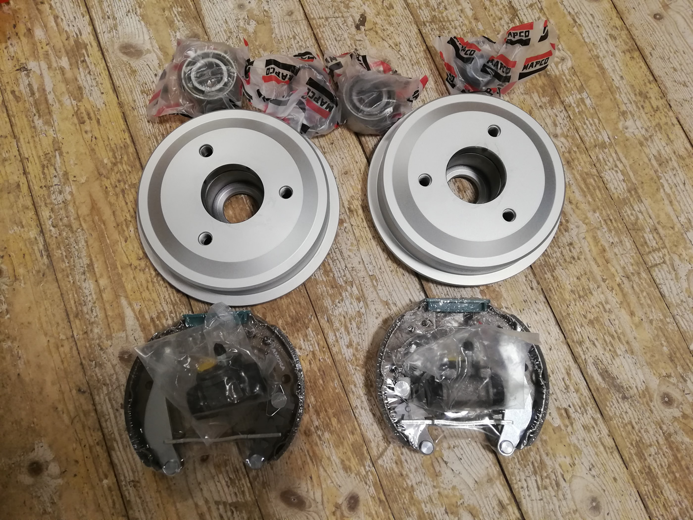 Suure vihaga läksin internetti ja tellisin ära uue tagasilla, uued amordid ja kõik piduriosad. Lisaks sai tellitud uued esituled ja suunatuled. Õhtuks oli auto olukord selline: