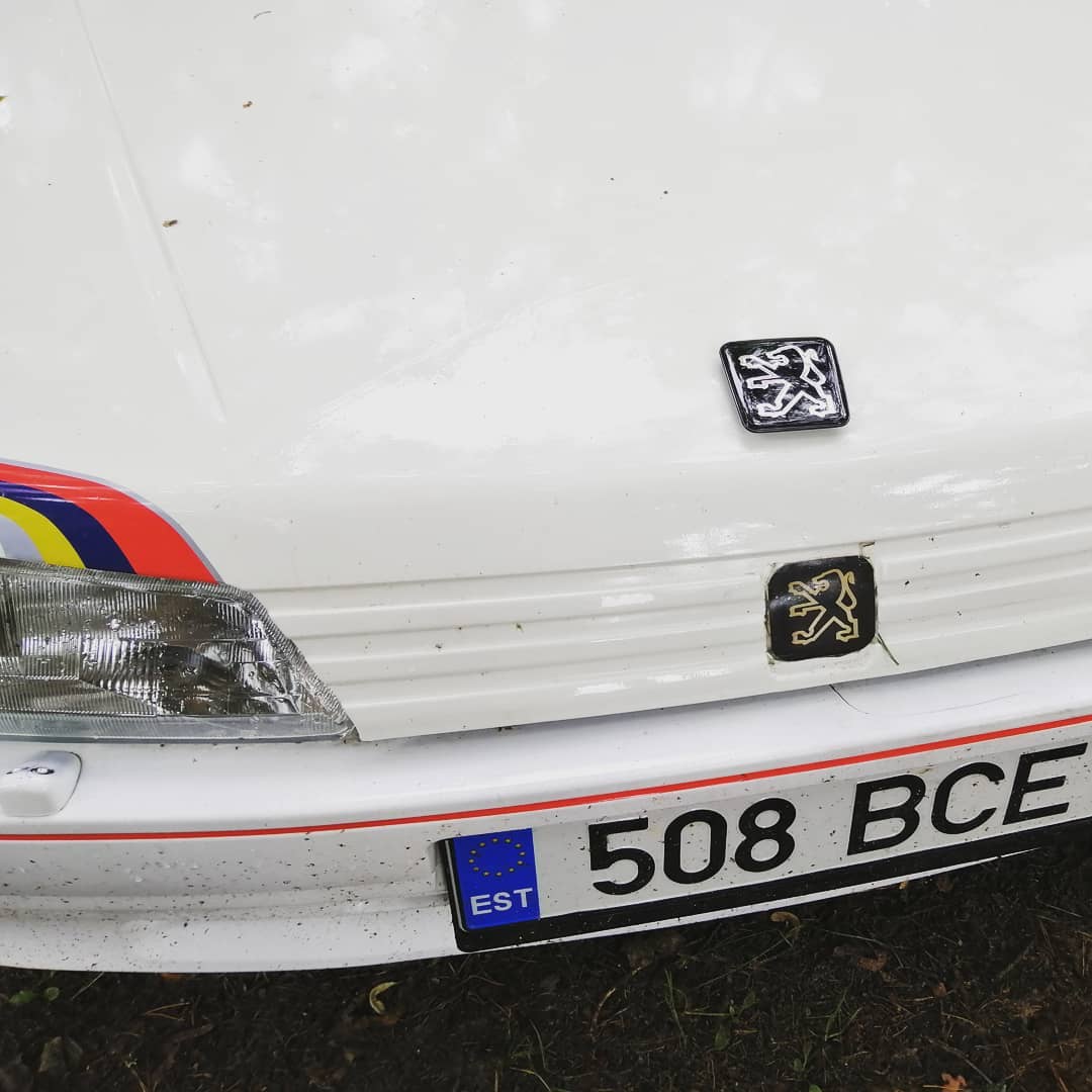 19. mail sai käidud autoga Lustisõidul ja kõik pidas ilusti vastu. Hirmsasti hakkas häirima, et kapotilt puudub Peugeoti märk. Eestist on antud märki võimatu saada ja ka esindus ei oska aidata. Käepäraste vahenditega sai tehtud ise märk ja selleks oli vaja ajastukohane logo välja printida ja lamineerida-lamineerida-lamineerida. Kaugelt petab täitsa ära, aga õiget märki oleks sinna ikkagi vaja. Lisaks häirb ka katkine esistange ja lähitulevikus on plaan see välja vahetada uue vastu ja siis juba loodetavasti Rallye enda oma.