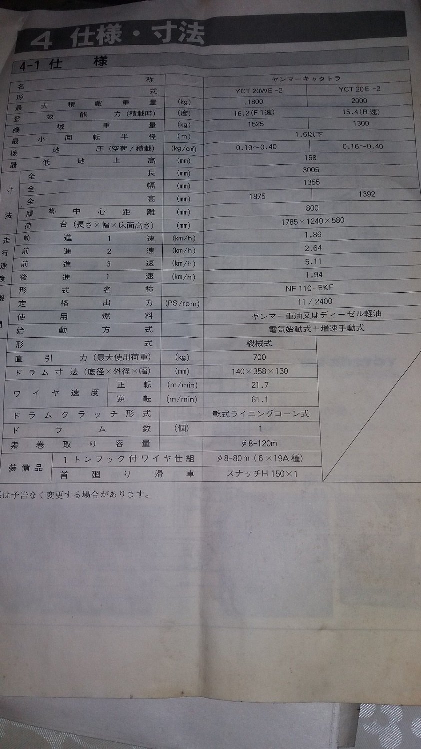 Väikeomaniku metsas majandamise eesmärgil olen mõnda aega ringi vaadanud miski ATV-laadse lahenduse järgi. Kes otsib, see leiab. Leidus pakkumine, mis tundus huvitav ning ebaõnne korral majanduslikult mitte liiga hävitav. Tegemist on Jaapanis toodetud metsaveoks kohandatud roomik-platvormiga Yanmar YCT20WE-2. "Põkat" veab edasi 1-sil diiselmootor NF110, millel peaks võimsust olema 11kW. Põka liigub metall-lintidel ning on varustatud masina suuruse kohta suhteliselt võimsa mehaanilise vintsiga. Kaalu on turskelt, 1,5t, lubatud kandevõime 1,8t. Vintsi tõmbejõuks on passis antud 700kg. Nagu piltidelt näha, on platel seadeldis tüveotsa kinnitamiseks. Jaapani asjatundjad on tugiraamile külge meisterdanud küllaltki toeka tõstepoomi, millel on käsitsi seatav pikendus. Vintsi tross käib üle poomi nokka kinnitatud plokiratta ning toimib kraanana, mille abil tüveots plate kinnitusele vinnata. Plate pikkus on 1,8m, laius 1,2m.