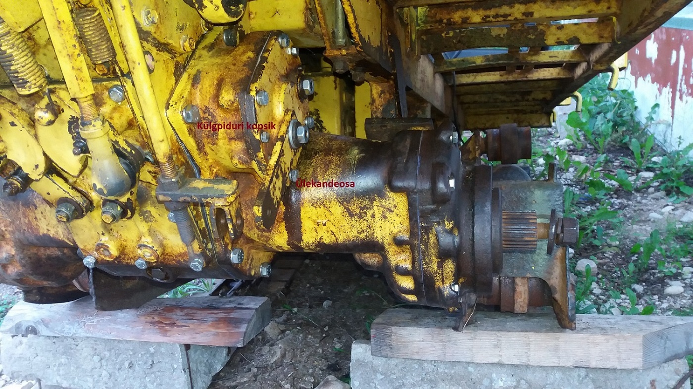 Lootes lihtsamalt pääseda, alustasime vasaku ülekande demontaaži otsmise reduktori maha võtmisest. Hoolimata roostes välimusest läks poltide avamine ladusalt. Peale otsa maha võtmist selgus kinnikiilumise põhjus: ühe laagri separaator oli katki läinud ja kuulid jooksid ühte puntrasse kokku. Laagri kätte saamiseks tuli terve käis maha võtta ning võll koos katkise laagriga sissepoole välja saada. Käis on mitmefuktsionaalne üksus, kus lisaks jõuülekandele pesitseb veel ka külgpidur. Käise pidurivõlli otsalt maha monteerimiseks avasin kõigepealt külgpiduri kopsiku kaane. Sealt alt vaatas vastu piduriprobleemi põhjus: pidurisse oli tihendi rikke tõttu valgunud õli. Käise jõuülekandevõllilt maha monteerimiseks avasin korpuse eest poolt. Korpusse sisse vaadates tuli pisar silma: vastu vaatas fantast inseneritöö ja töötluskvaliteet. Kui mul enne veel oli masina suhtes kahtlusi või kõhklusi, siis kompromissitu läbimõeldus ning teostus tekitas kindla veendumuse, et seda masinat on mõtet remontida. Kui masina detailid, laagrid, sõlmed on säilinud peale rasket tööd sedavõrd heas korras, siis peab olema tegemist väga hea masinaga. Pole aimu, millal seadeldis toodetud on. Temas on kasutatud plastkatetega laagreid ning hermeetikuid, mis näikse viitavat 70. - 80. aastatele. Peale 40 aastat töötegemist võib masinas ju tõesti laagri separaator katki või kaelustihend ära kulunud olla.
