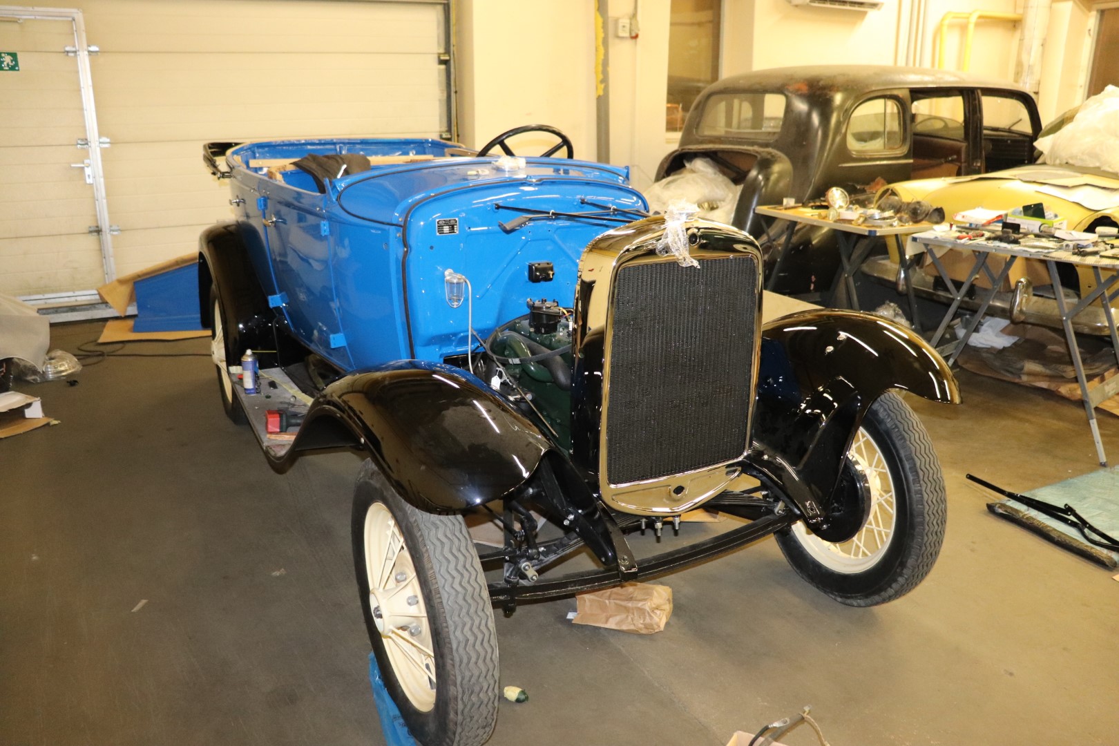 Jaanuari lõpuga näeb siis auto välja selline. Enda arust said kõik jupid tellitud, Isegi mitu korda auto üle käidud aga puuduolevate asjade nimekiri muudkui pikeneb. Hetkel on seal juba 20 vidinat, küll enamuses pisikesed, aga siiski. Palju on ka Ameeriklaste praaki. Näiteks tellisin kummimatid, esimese ja tagumise, müüdi komplektina. Ostetud juba poolteist aastat tagasi. Kuna pakil oli ilusti kirjas Front ja Rear, ei hakanud pakki lahti kiskuma. Nüüd tahtsime sobitada ja võta näpust, mingi neeger oli pakki kaks esimest matti pannud. Samuti mõned pisidetailid on vale aastakäigu omad saadetud. Kõige kallimad tuuleklaaside hoidikud 1927 - 1929 a omad. Ütlevad küll et saada tagasi, vahetame ümber aga see ka uued tollid uued saatmiskulud jne.