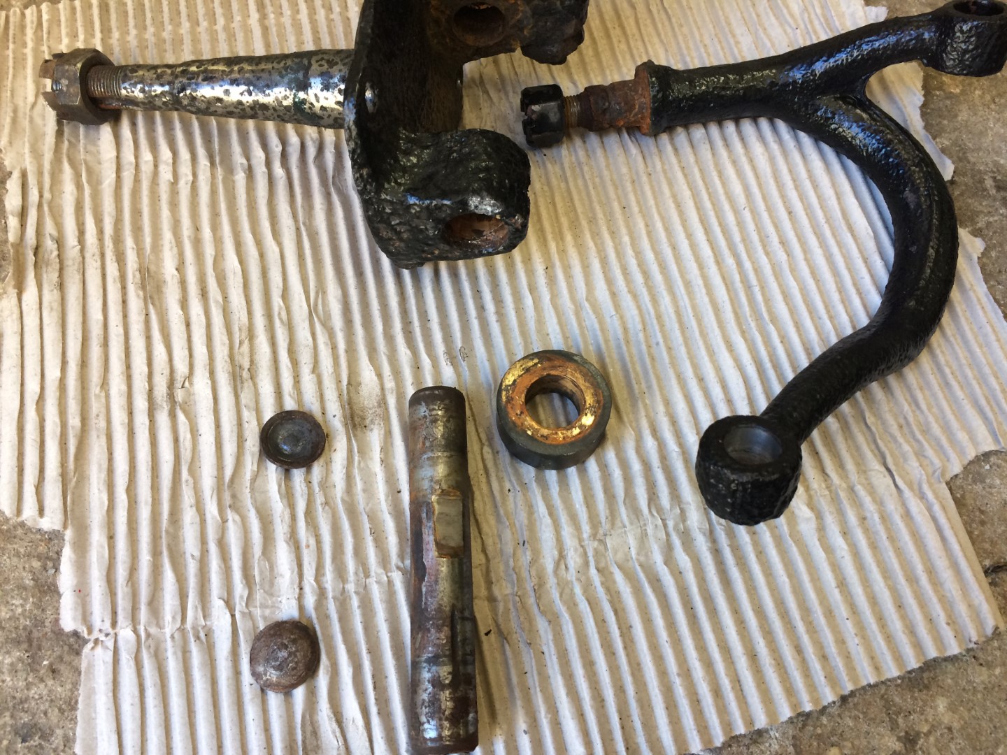 Kuna vahepeal mõlgutasin mõisniku mõtteid ja plaan oli teha valmis 3-4 GAZ M1 - 11 seeria autot, siis sai neid juppe igalt poolt kokku otsitud. Elu tõi maa peale tagasi ja GAZ 11-40 ja GAZ 11-73 projektidest loobusin ja müüsin kogu kupatuse Venemaale. Keskendusin siis paralleelselt kahe KGB M1 tegemisele. Sai kunagi Venemaalt komplektne, müüja jutu järgi renoveeritud, 100% originaalne  esisild ostetud. Kuna ost toimus fotode alusel, siis lendasin täiega peesse. Eks vanasõna ütleb ka, et loll ja raha tulevad teineteisest lahutada. Eks hakkan nüüd esisilda taastama. Nagu ka amorte. Mõned pildid eluohtlikest kohtadest, muidugi ei kannata kriitikat ka piduri süsteemi ehitus ja üldse kogu kupatus.