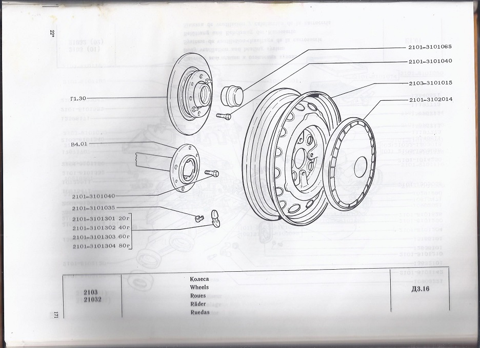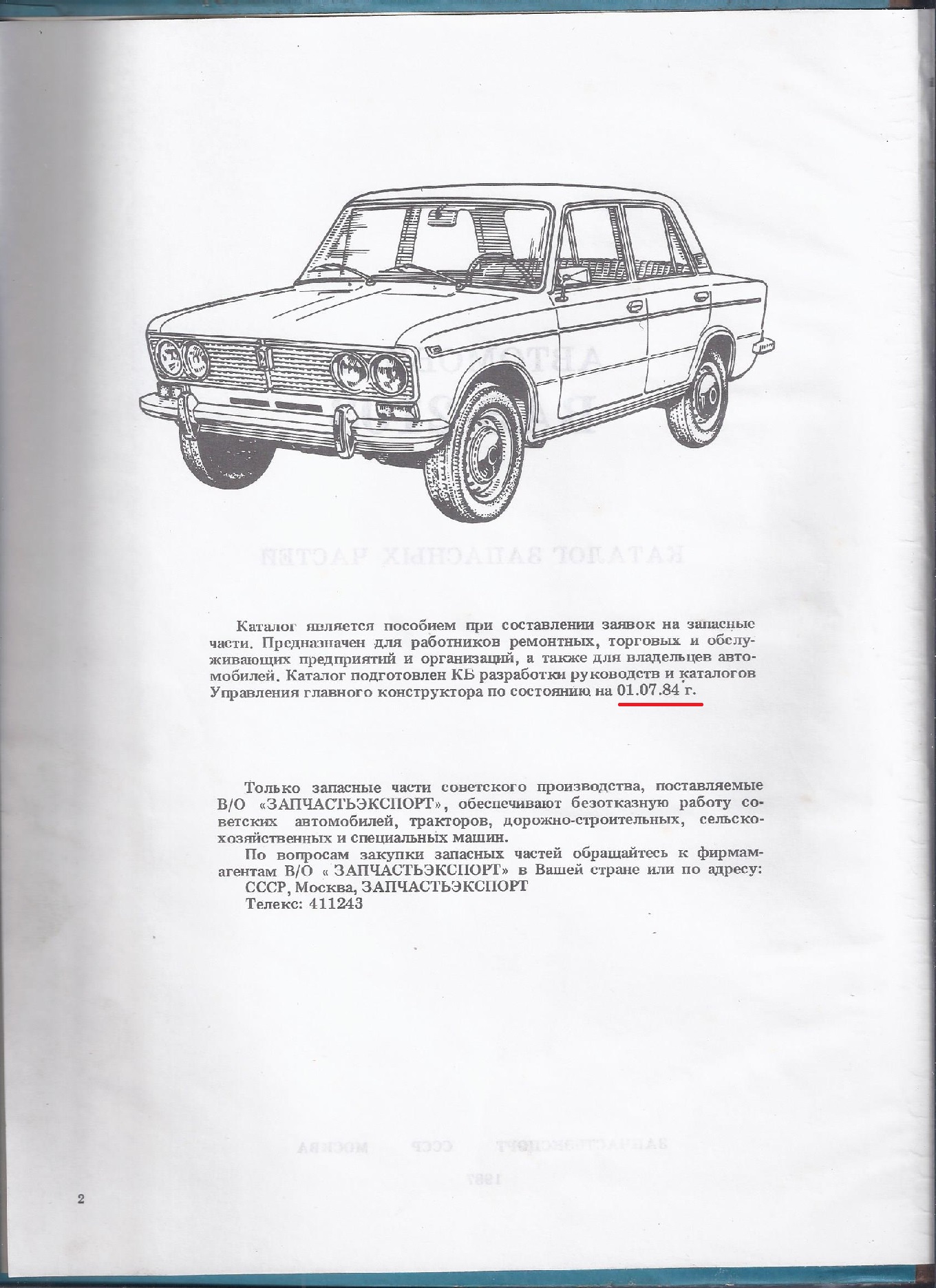 Samuti Zapchastexport, avalikustatud trükkimisaastaga 1987, sisukäsitlus seisuga 1. juuli 1984. Velje juurde on tekkinud muudatusega teisend 2103-3101015-01. Minu sisetunne ütleb, et sellega tähistati velgi, mille augu servad on siledad. .  Raamatu lõppu ei ole lisatud muudatuste lehekülgi.