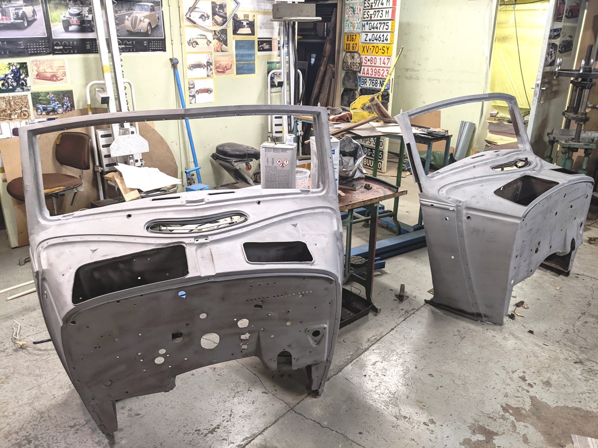 Hetkel käib plekiosa ühitamine ustega ning ees on ootamas uute puitdetailide valmistamine  - need paiknevad ukse esimeses postis ning aknaraami all. Käsitööautole omaselt tuleb siin teha kompromisse ning laseriga 1mm täpsusega mõõtes tulevad välja keretehase varasema töö ebatäpsused. .