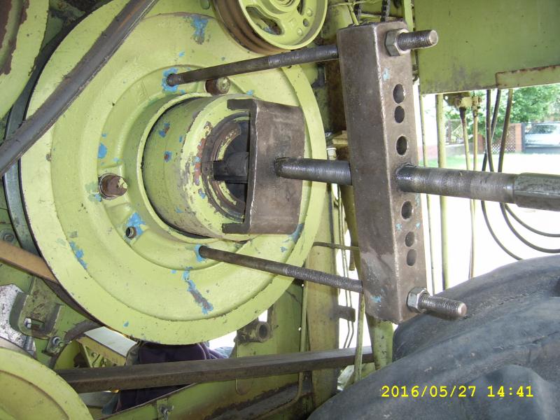 Hetkel sai sisse teise kombaini võll ühes veoratastega. Kogu töö tegmiseks tuli heeder ära võtta ja aega kulus ca 1 tööpäev. Uued puitkaikad tegin kasest. Panin ka parema kaldtee keti, mis sai 3 aastat tagasi välja võetud, kuna osa labasid väga katki/kõverad/puudu. Nüüd said ka labad remonditud ja ca 15 tk uute vastu vahetatud.
