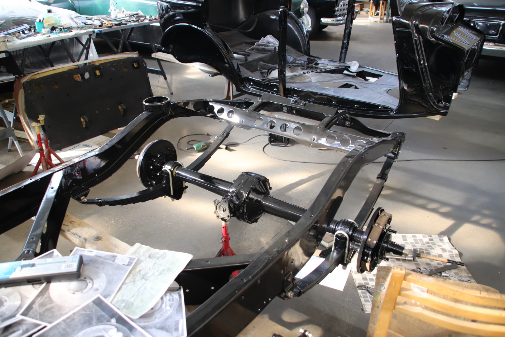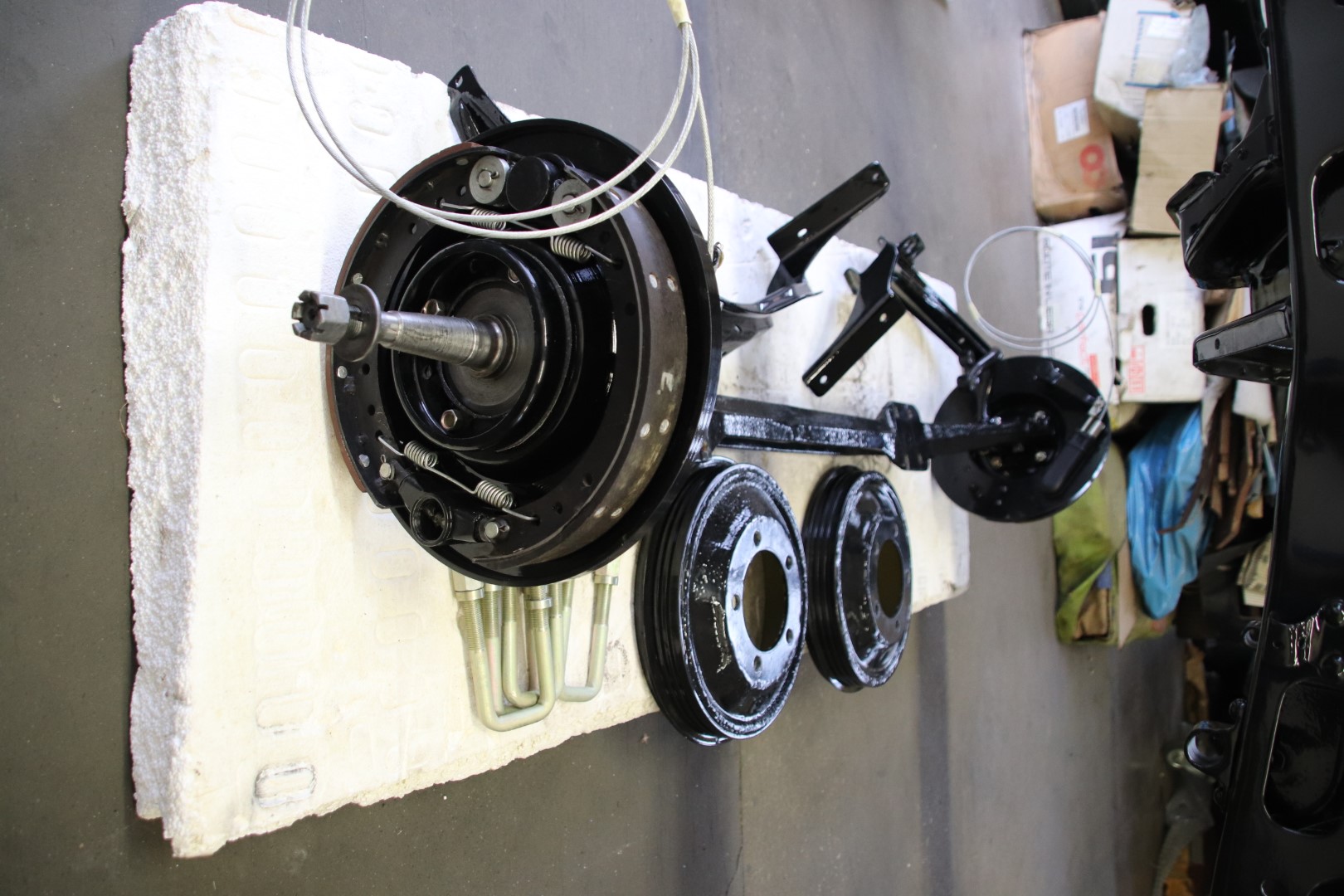 Hea, et on olemas ka originaalne M1V8 raam. Piduri süsteemi ehitamisel ei olnud võimalik piduri pea võlli panna sinna, kus ta asus tava mootori puhul. Teisel raamil olid need avad teise koha peal ja pea murdmise koht jäi olemata. Ümber ehitada tuli kogu hoovastik, seda ainult seoses muutunud pikkustega. Käsi pidurist oli juba juttu. Muuseas erinevalt GAZ A-st, millel on käsipiduri jaoks eraldi hoovastik ja eraldi trummel ja klotsid, on GAZ M1 käsipidur ühendatud pea piduri võlliga ja toimib samaselt jalgpiduriga. Eks leiti kokkuhoiu koht. Seoses pidurivõlli asukoha muutusega tuli ümber ehitada ka pedaalilt tulev hoovastik. Sama kehtib ka siduri võlli kohta, sest mootor ju hoopis teine.