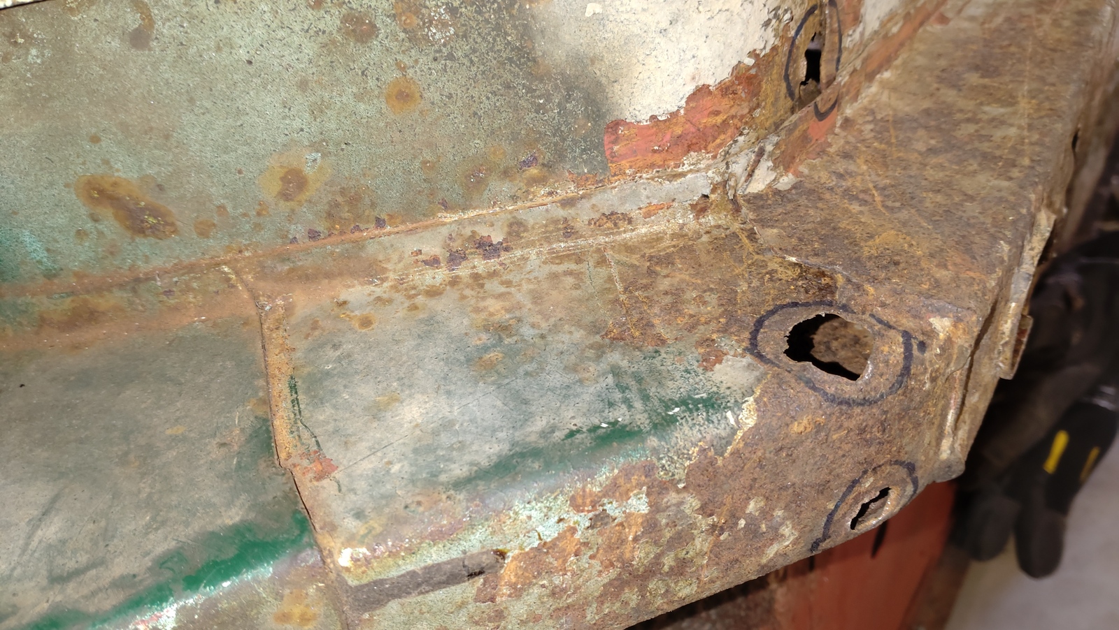 Esimene küsimus on, et kas üritada järgmisel pildil sinisega näidatud kohast alates kõik välja vahetada, või õigem rohelise joone pealt lõigata ja edasi uus osa teha? Seal sinise kohapeal see tükk jookseb lonzeroni sisse ning ma pole kindel kas/kuidas mul õnnestuks praegune tükk sealt käitte saada, et ta kogu täiega ära vahetada. Rohelise kohapealt on teostuse mõttes lihtne (ja saaks vajadusel sisse mingid lisa tugevdused keevitada).