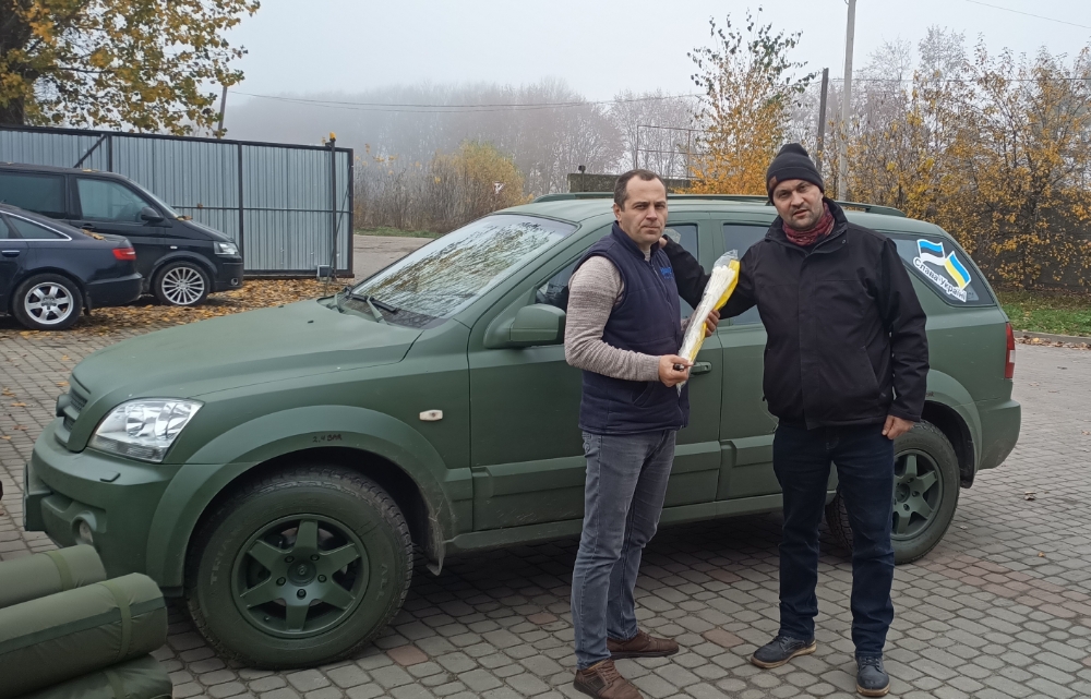 Volodymyri kõrval asjade lahtipakkimine ja üleandmine kohalikule vabatahtlike ühendusele "ühinenud aktivist", kes komplekteerisid asjad kohe ringi ja saatsid teele 5+ erinevale üksusele. Ühel pildil näha kia võtmete ja ksf. Nastiku kohustusliku lisavarustuse üleandmine kohalike vabatahtlike esindajale. Lisavarustus jagati parema püügitulemuse saavutamiseks erinevate masinate vahel.