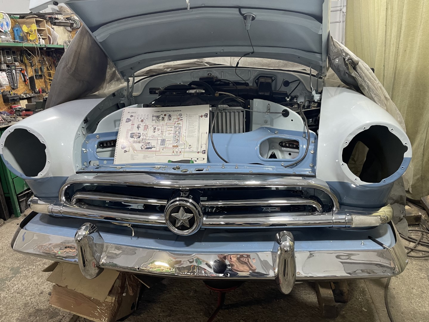 Papid paika pandud ja siis need koos kinnitusvahenditega pealt mustaks värvitud. Hiljem ka mootoriruum värvitud ja seepärast nad ka sealt poolt värvised. Neid suuri mustaks värvitud seibe kasutati ka varasemalt Pobedadel ja peale vanade Volgade ka "uuel" Volgal, mudelinumbriga 24.