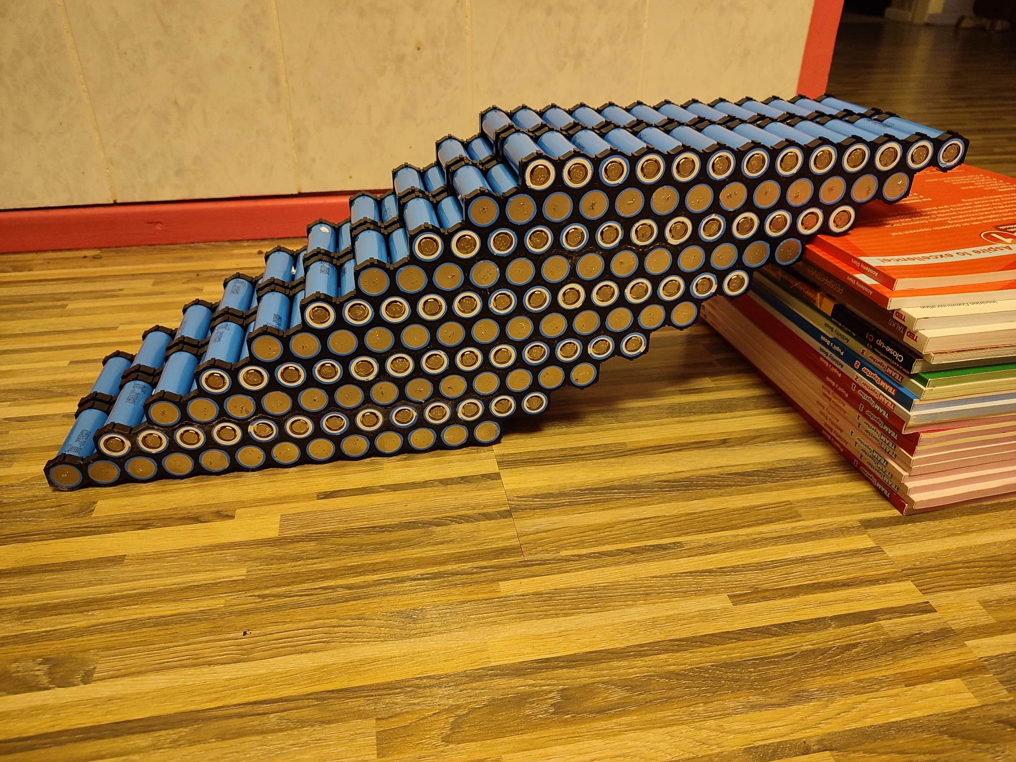 Hetkel on akupakk enam-vähem valmis, BMS balansi juhtmed on küljes, power juhtmed veel ootavad vasklatte terminalideks - Ülaservas olevad nikliribad joodan vasklattide külge siis. Kui see valmis, läheb peale veidi kapton teipi kriitilistesse kohtadesse ja termokahanev lutt otsa.