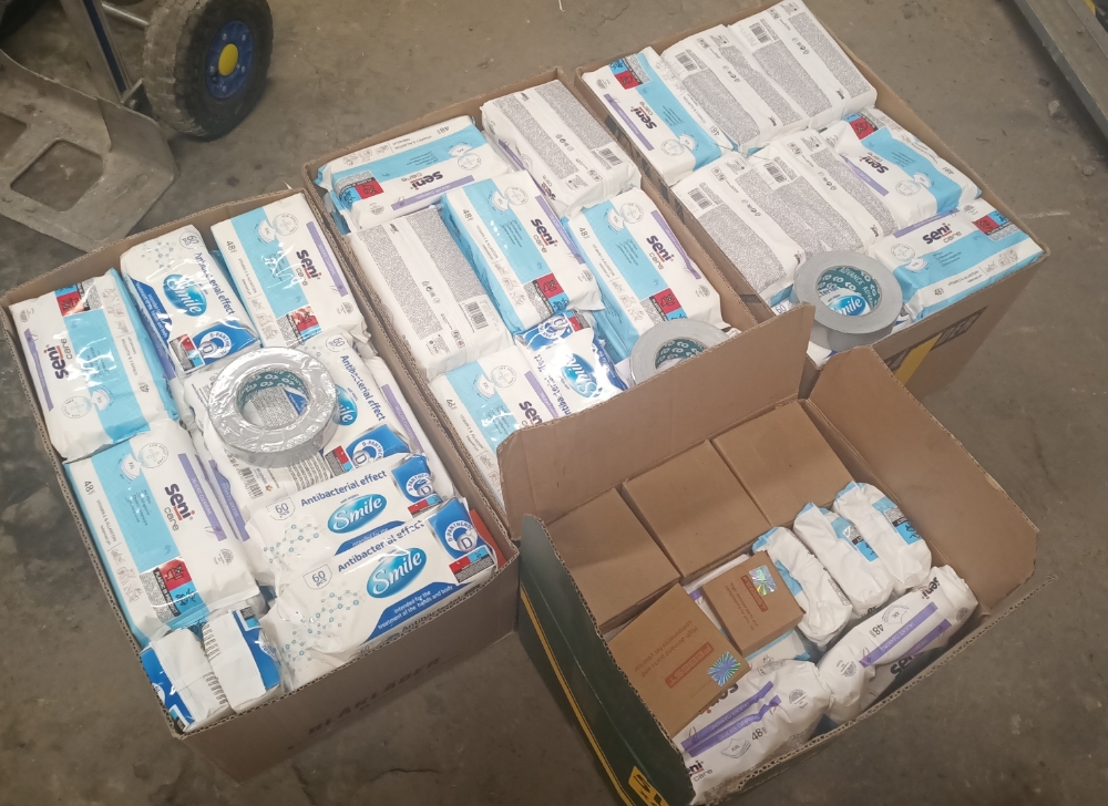 Täna läks Dnipro poole teele 11 kasti latekskindaid. Eelmisel nädalal läks neli kasti. Eile sai H1 ka uuesti tule kolvile ja lootust on, et saab täna masinaga töökojast välja sõita.