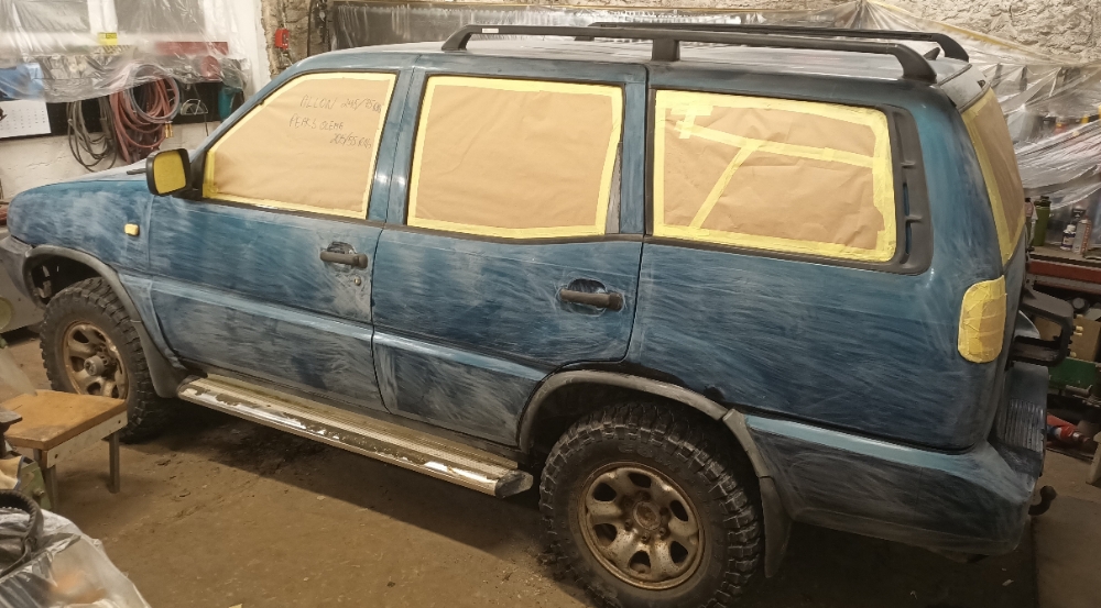 Partneri kõrval on Sorento, mis on ka värvimisootel. Sellega ma pole tahtnud veel ülevaatusele minna, sest roheliseks tehtud autodega ollakse mitteoluliste vigadega veidi leebemad. Selle Sorento remonditööd on enam-vähem lõpetatud ainult mingid pisiasjad vaja veel korda teha nagu kaugtuled ja kütuseluugi avamine. Raam oli tal küll üsna nukras seisukorras ja oma aja puudumise tõttu lasin selle oma naabril keevitada. Ta lubas 20.- €/h ära teha. Aega läks tegelt rohkem aga raha küsis mult 240.- €. Selle maksin omast taskust.