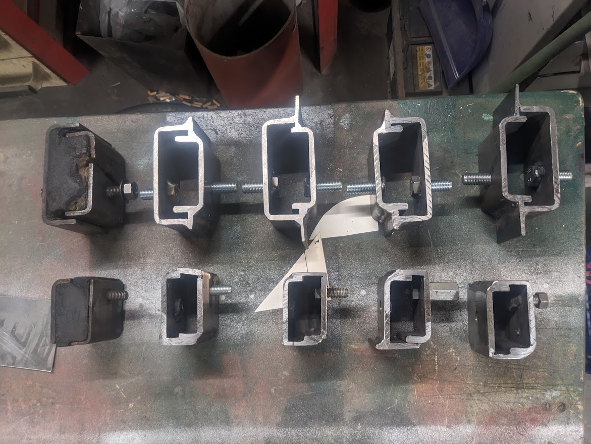 Mootoripadjad - näidised Riia Mootorimuuseumist, metallitöö PereTecis. Nüüd tuleb täita kummiga ja üleliigne metall eemaldada. Originaalmootoripatjadel kummid katki ja isegi metalliosa on ajaga purunenud.