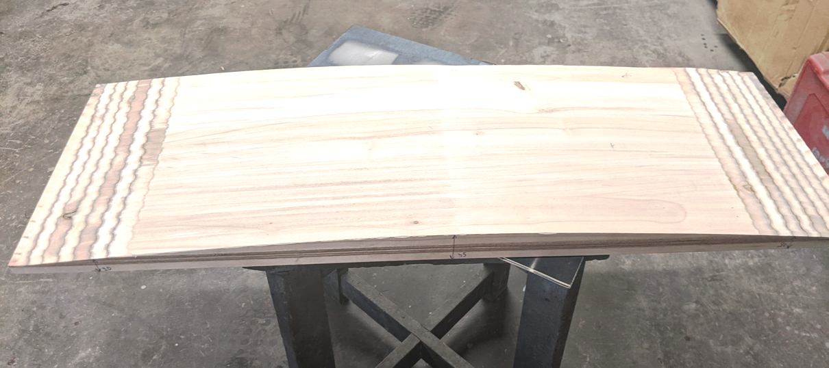 Klaas on loomulikult sirge, kuid katuse ümar kuju on ka aknaraamil. Seetõttu alustasime toorikule kaare tegemisest - raadius 3500 mm.